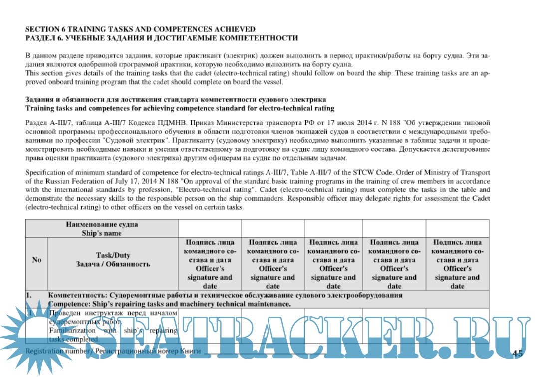 Описание: Эта книга регистрации практической подготовки судовых электриков предназначена для структурирования обучения и контроля навыков моряков в соответствии с требованиями Международной Конвенции ПДНВ-78 с поправками (STCW 1978, amended 2010). Она объединяет теоретические знания и практический опыт, необходимый для получения квалификационного свидетельства электрика на морском судне. Книга детально описывает задачи и обязанности, которые должны выполняться под руководством опытного офицера, а также фиксирует уровень освоенных компетенций. Практикант обязан вести книгу регулярно, своевременно предоставлять её на проверку и обеспечивать достоверность записей. Руководители на борту и капитаны оценивают прогресс, подписывают записи и контролируют выполнение обязательных заданий. Книга охватывает обязательные требования для судовых электриков, включая работу на судах с мощностью главной установки 750 кВт и выше, а также фиксирует прохождение обязательного ознакомления с безопасностью и техническими характеристиками судна. Она является официальным документом, подтверждающим квалификацию и подготовку морского электрика.