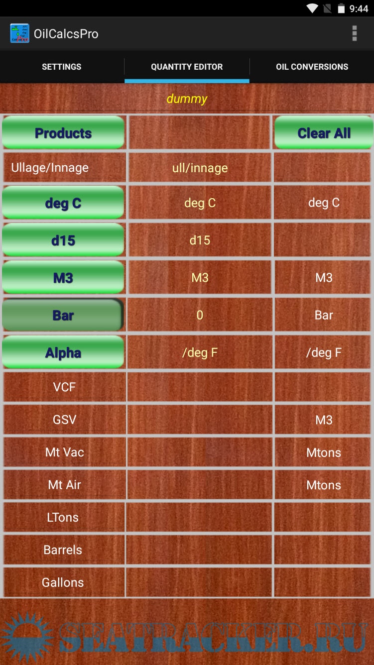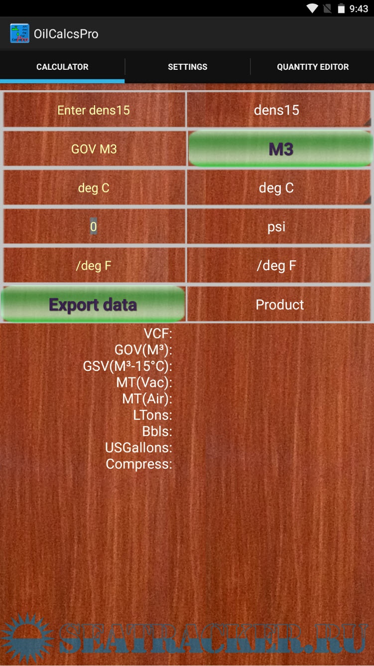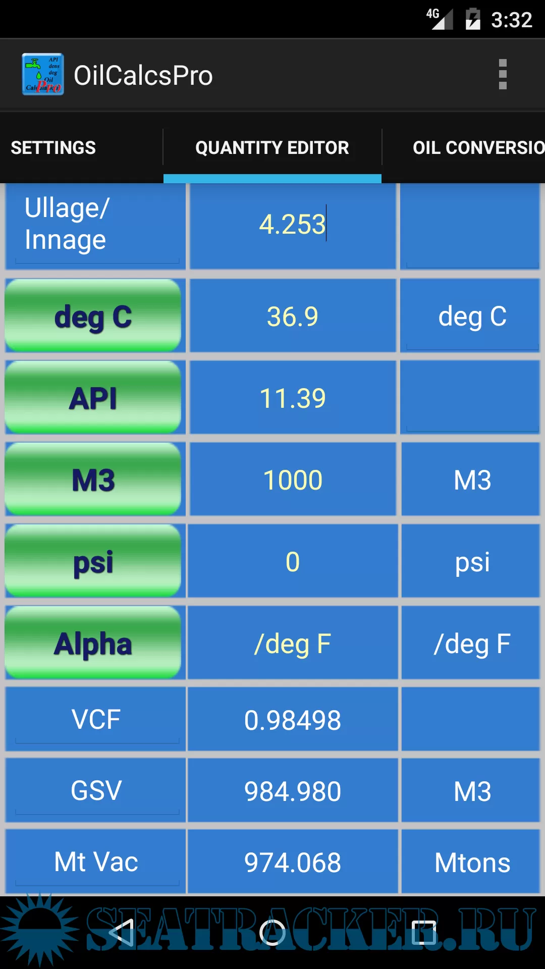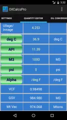 The app uses the ASTM tables / formulas to calculate weights and volumes based on entered density or API, obs volume, pressure and temperature, and calculates the following: