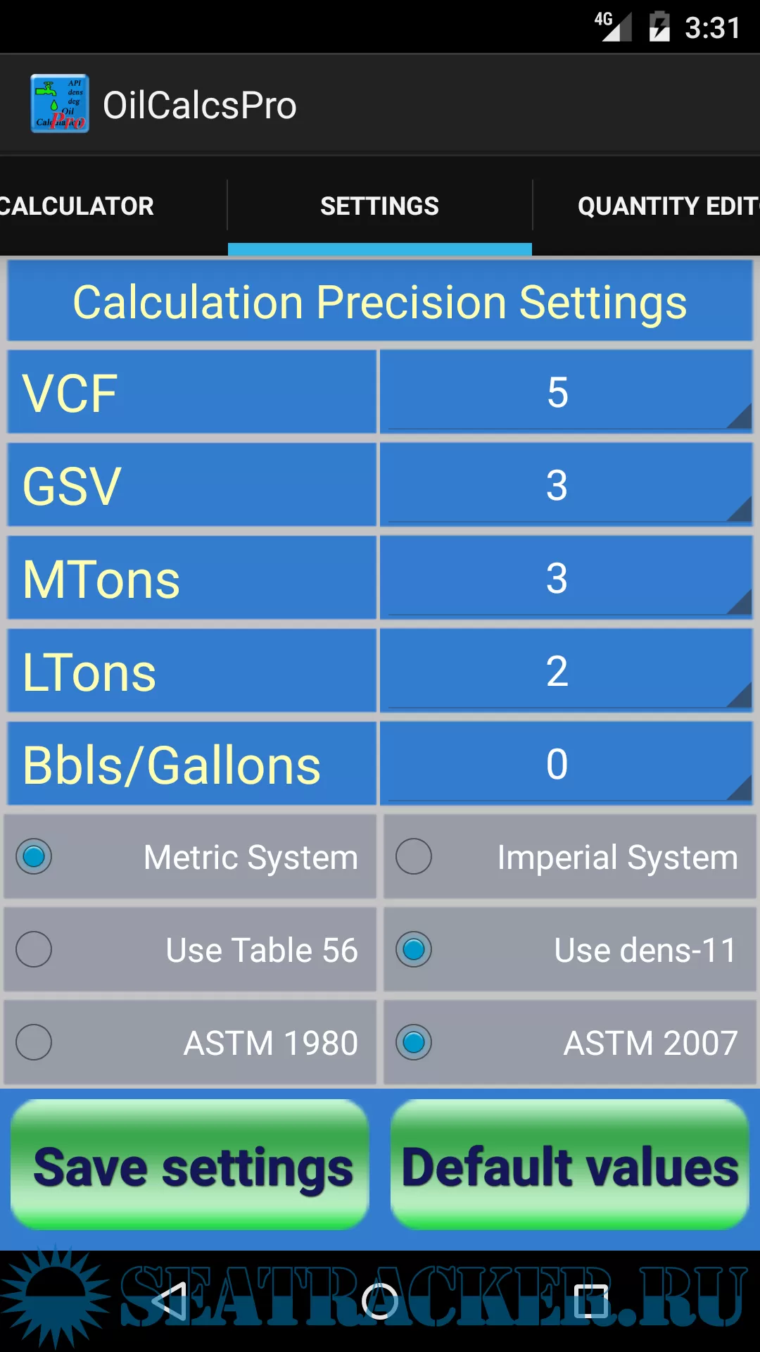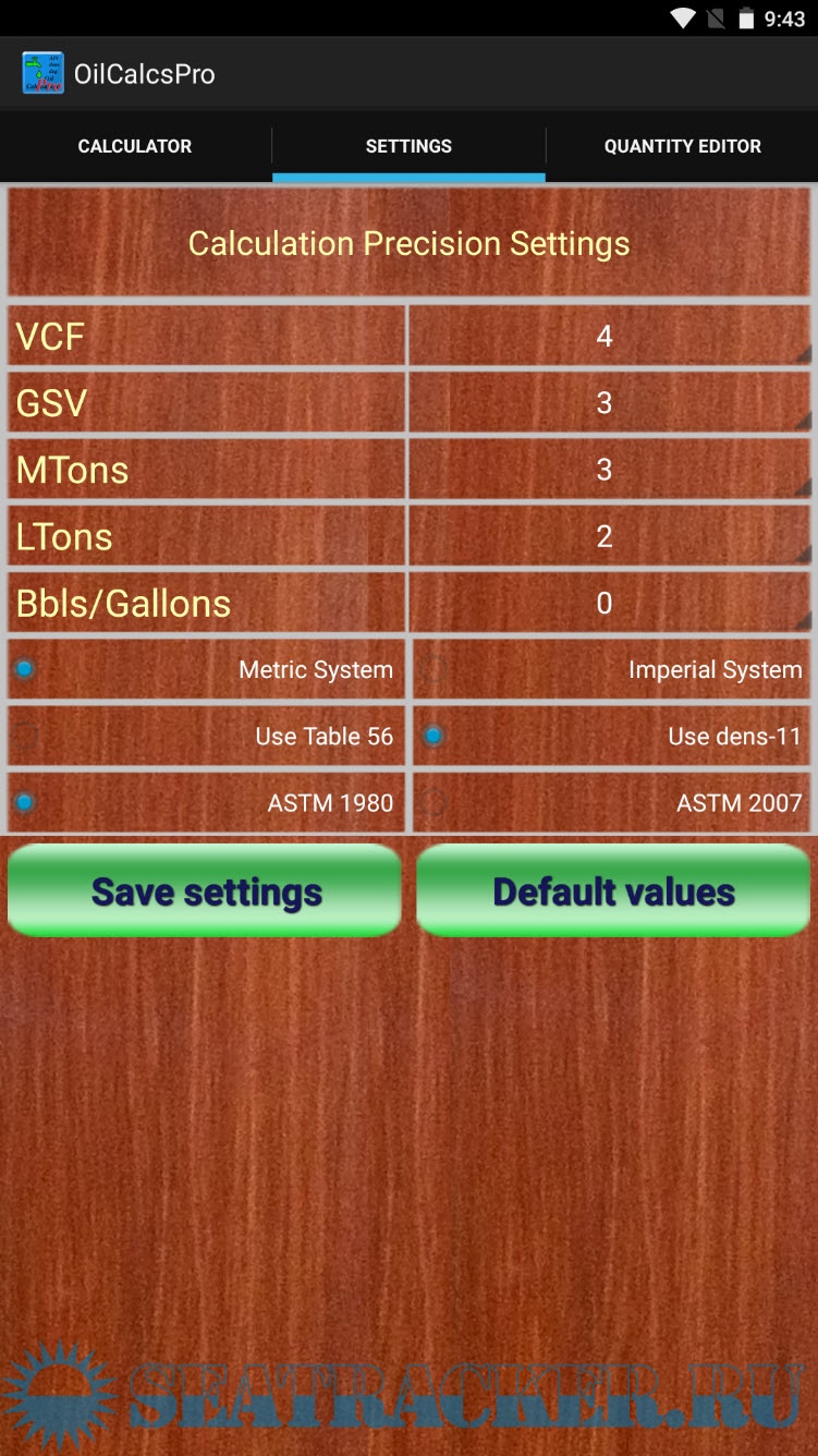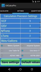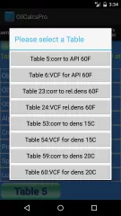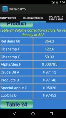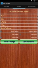 The app has both ASTM 1980 and 2009 tables, and users can select which table to use for the calculator in the settings screen. Users can also select whether they want to calculate using SI Metric or Imperial units.