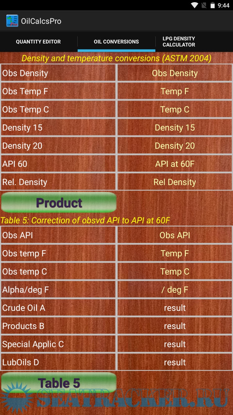 Oil Calculator Pro gives you direct access to the following ASTM tables for calculations concerning Crude Oil, Products, Lubrication Oils and Special Applications: