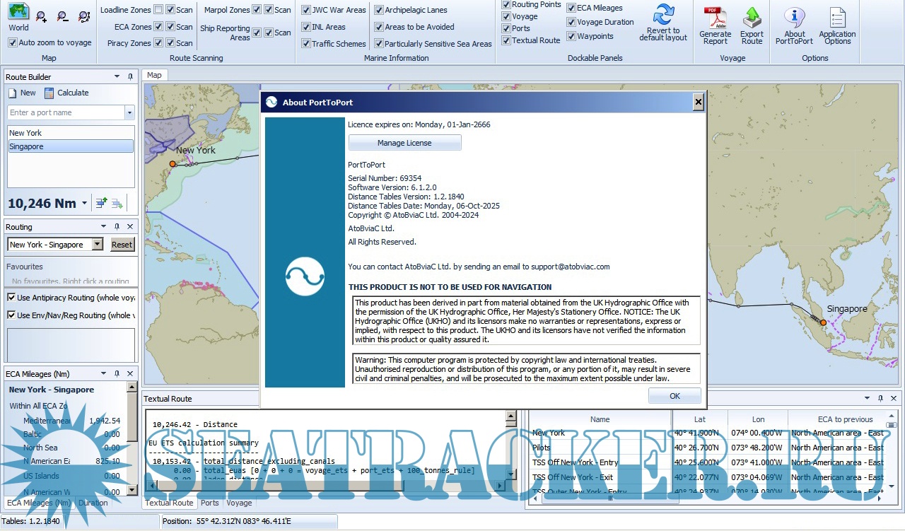PortToPort Desktop is part of the AtoBviaC distance calculations software range. This desktop application does not need the internet, making it ideal to be used on ships at sea. It gives access to the AtoBviaC Marine Distance Tables via Windows PCs, making sure the marine distances and route calculations produced are accurate and realistic. The Distance Tables used are automatically updated to use the latest version of the Distance Tables whenever a new release is made, ensuring that subscribers always have access to current distance data.