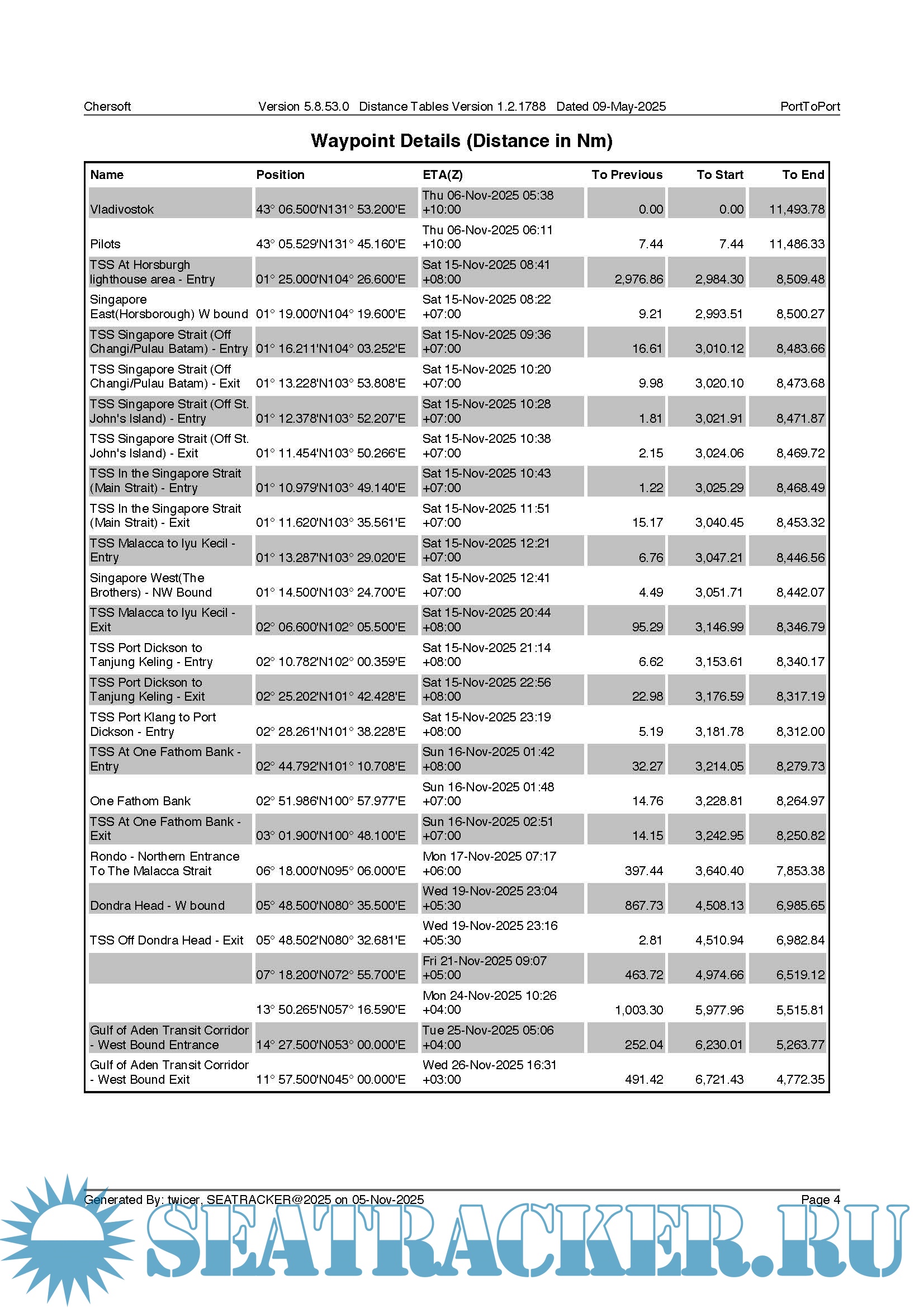 Tables updated to Admiralty Notices to Mariners 2025 Week 40 | Distance Tables Date: Monday, 06-Oct-2025