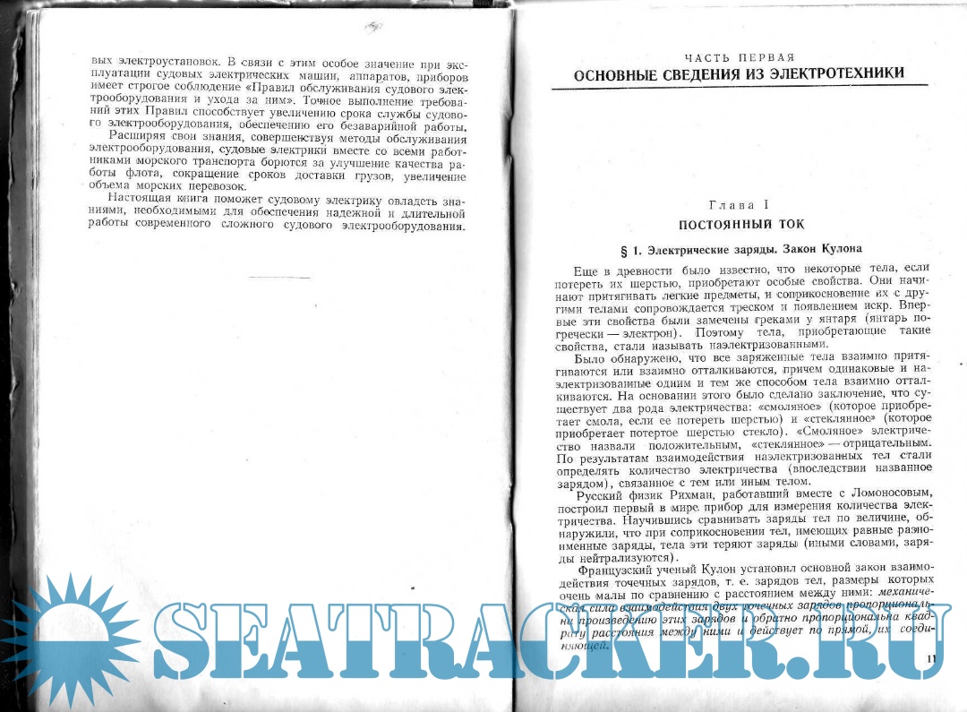 Год выпуска: 1955 Язык: Русский Автор: П. П. Суслин Издательство: Морской транспорт Формат: PDF Качество: Отсканированные страницы Количество страниц: 168 Описание: Учебное пособие предназначено для подготовки судовых электриков и состоит из четырёх основных частей. В первой части изложены базовые сведения по электротехнике, без которых невозможна квалифицированная работа на судне. Далее (во второй части) рассматриваются электрические машины, приборы и аппараты — их устройство, работа и эксплуатационные характеристики. Третья часть посвящена электрическому оборудованию судов: генераторам, распределительным системам, кабельным сетям, заземлению, защитам, эксплуатации в морских условиях. В заключительной, четвёртой части, представлены практические указания, технологические процессы монтажа, ремонта и обслуживания электрического оборудования на судах, вопросы безопасности и особенностей морской эксплуатации. Книга снабжена схемами, чертежами и рисунками черно-белого исполнения, что делает её удобным справочным пособием как для учащихся морских училищ, так и для действующих специалистов.
