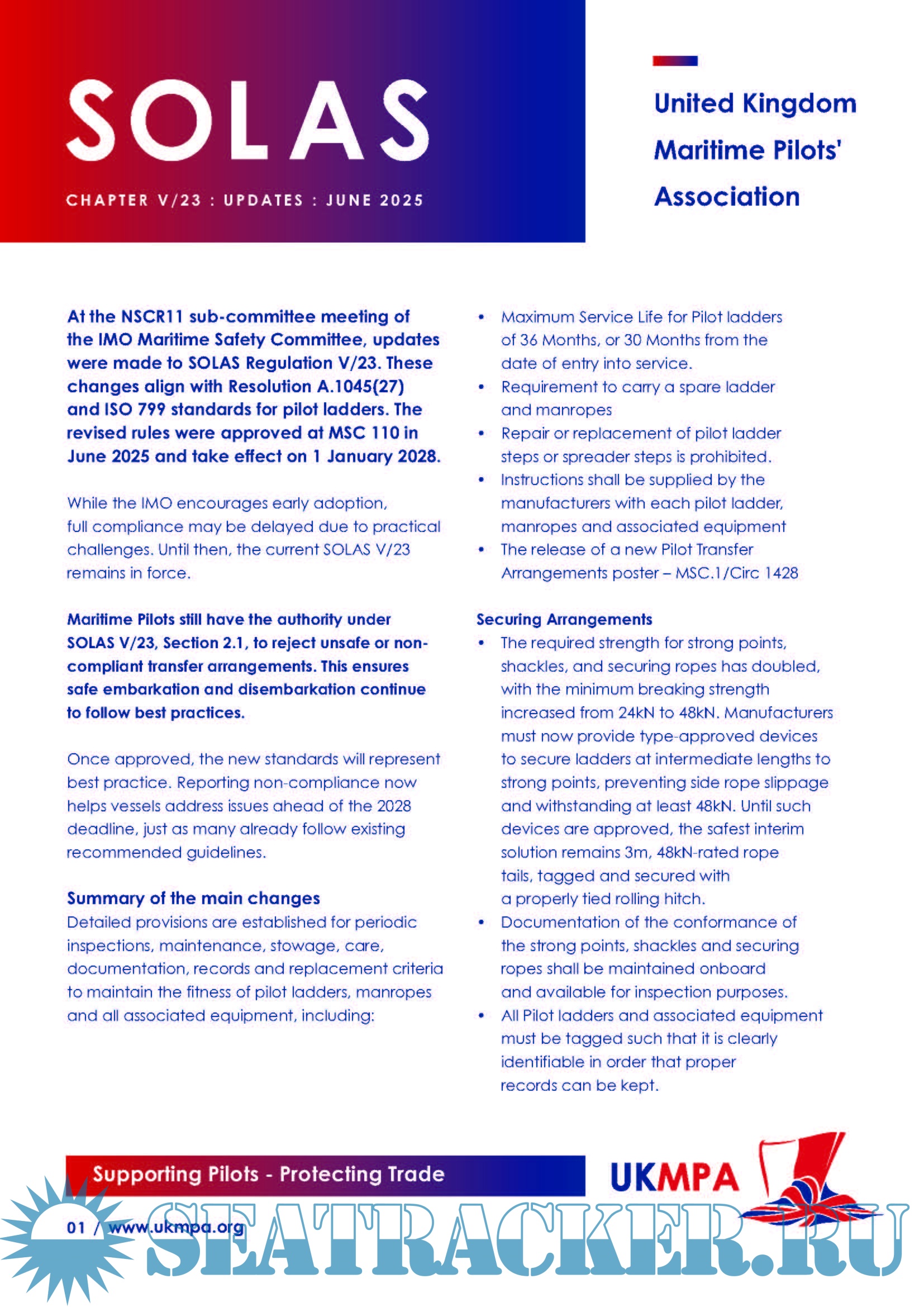 Additional info: Included Required Pilot Transfer Arrangements Poster - for HIGH Resolution printing, in accordance with SOLAS Chapter V Regulation 23 (2025).