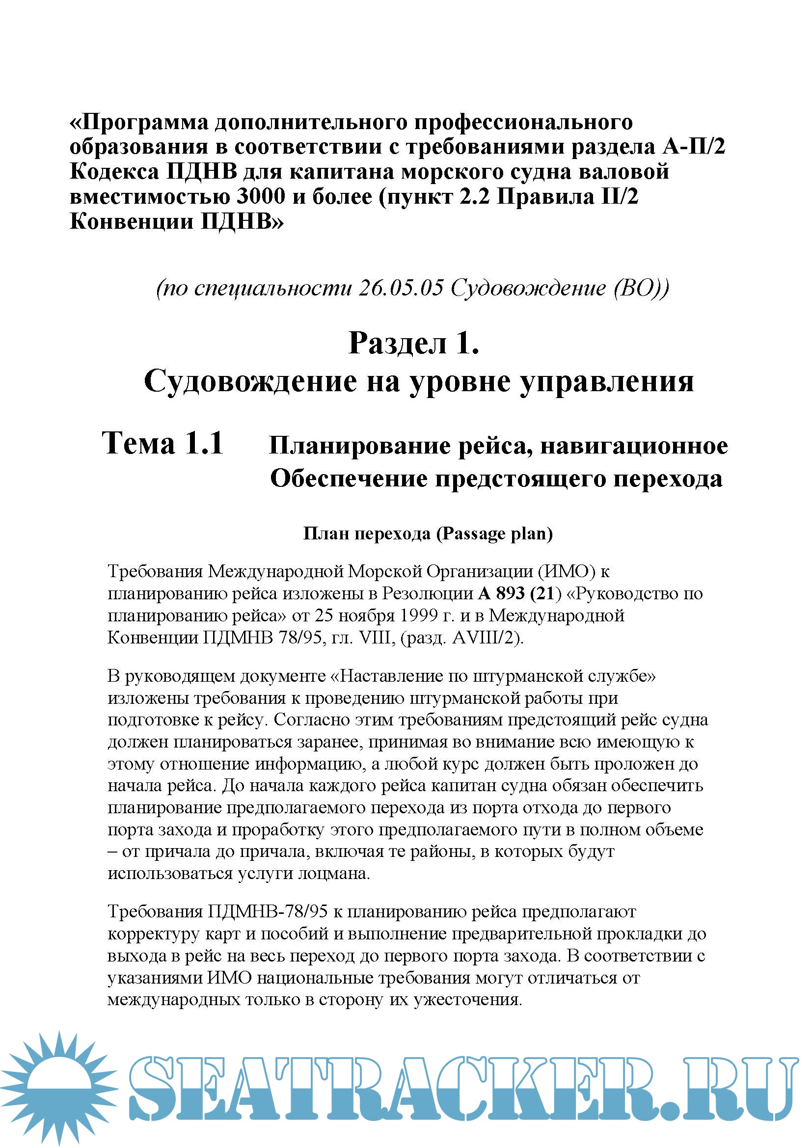 3. Курс лекций Программа ДПО «Программа повышения квалификации по должности капитана морского судна".