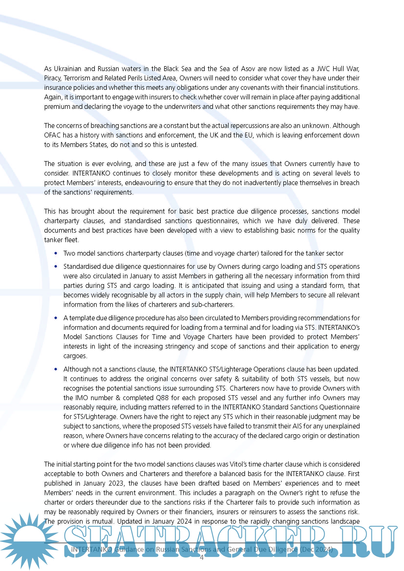 Year: 2025 Language: English Author: Intertanko Genre: Instruction Publisher: Intertanko Edition: 1st edition Format: PDF Quality: eBook Pages count: 7 Description: On 2 September 2022 the Group of Seven (G7) finance ministers released a statement confirming their intention to implement a comprehensive prohibition of services which enable maritime transportation of Russian-origin crude oil and petroleum products globally. The United States of America (US), European Union (EU) and United Kingdom (UK) subsequently introduced various legislation to prohibit the transportation of Russian-origin crude oil and petroleum products, unless the products are purchased at or below certain prices. The oil price cap (OPC), introduced by the “Price Cap Coalition” (or “G7+ Coalition”, comprising the G7, the EU, and Australia) has three main purposes: • To maintain the supply of Russian oil to world markets. • To reduce the upward pressure on world oil prices; and • To reduce Russia's earnings. Alongside the legislation, the Price Cap Coalition, the US Department of the Treasury's Office of Foreign Assets Controls (OFAC), the EU Commission, and the UK Office of Financial Sanctions Implementation (OFSI) and Departments for Business & Trade (DBT) and Energy Security & Net Zero (DESNZ) have released guidance and FAQs to help interpretation of the legislation. Additional info: The US, EU and UK have published guidance on the due diligence that is required from industry participants when providing maritime transport services for Russian-origin crude oil and petroleum products. Following the issuance of the Coalition Statement (https://tinyurl.com/4pjhrd2b) on Price Cap Rule Updates on 20 December 2023 by the Price Cap Coalition, new rules took effect on 19 February 2024 under UK and US regulations and for cargo loaded as of 20 February 2024 under EU regulations. Two significant requirements are that attestations are now provided on a per voyage basis, rather than annually, and that itemized price information for ancillary costs is provided upon request.