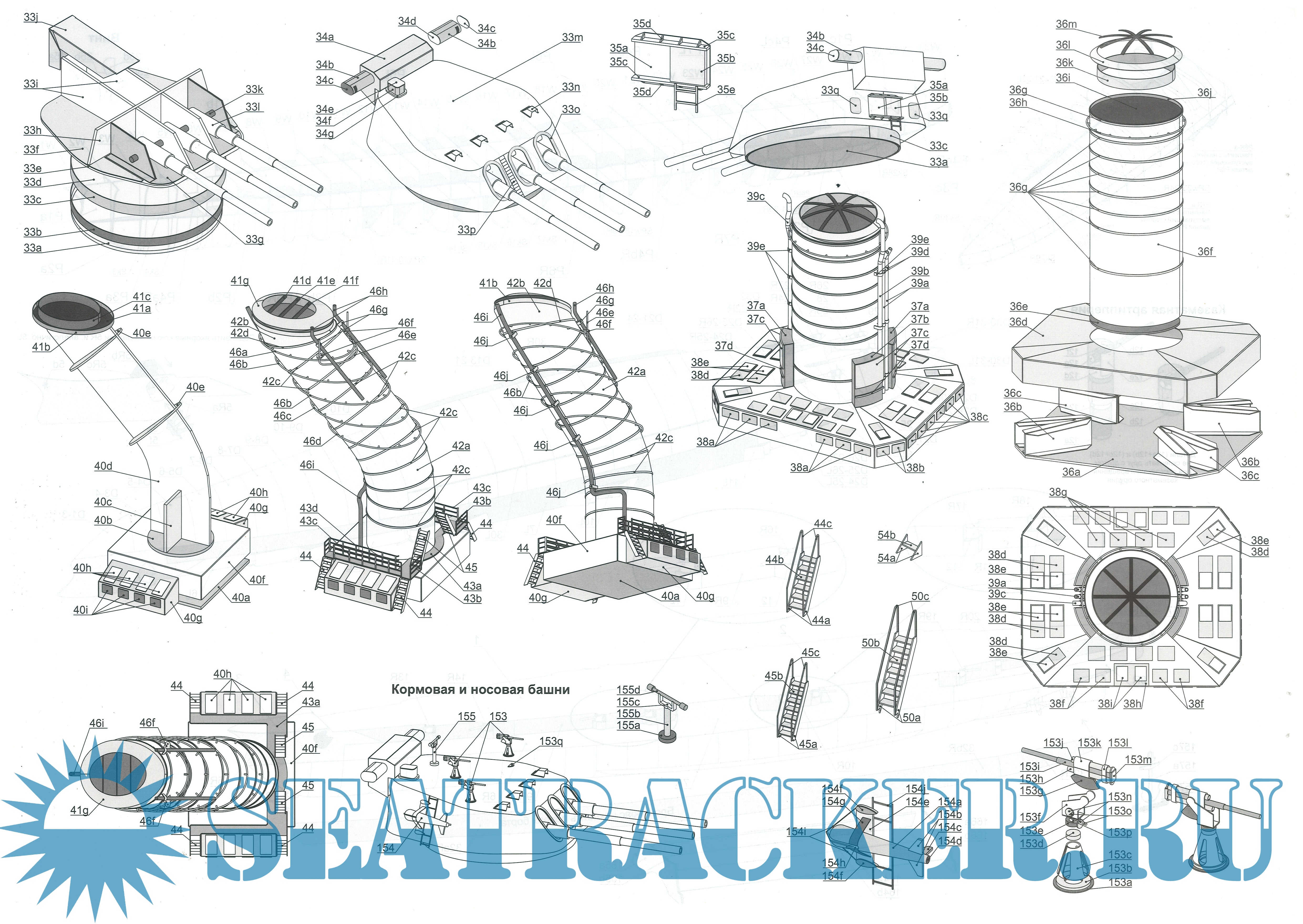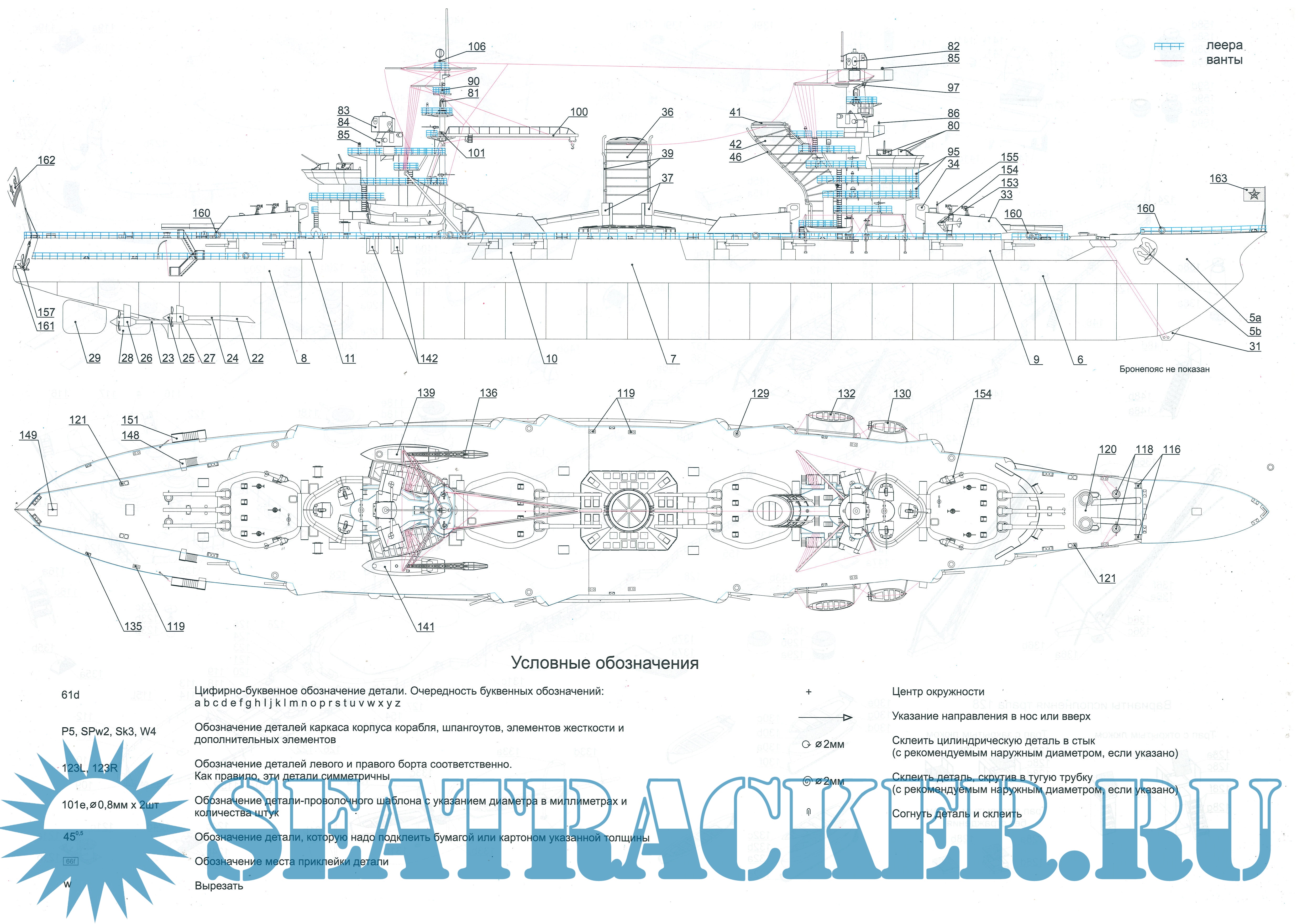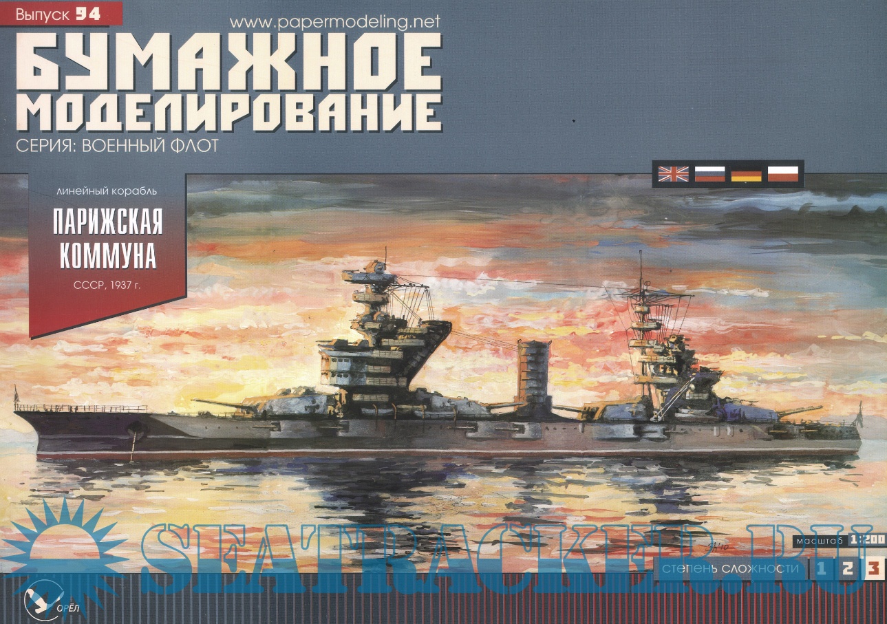 40 листов цветных выкроек и описаний для изготовления бумажной модели линкора "Парижская коммуна" по состоянию на 1937 год в масштабе 1:200Скриншоты