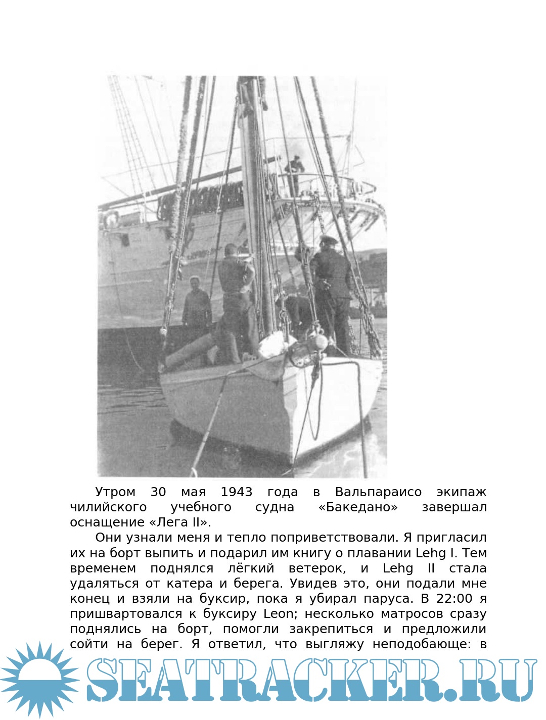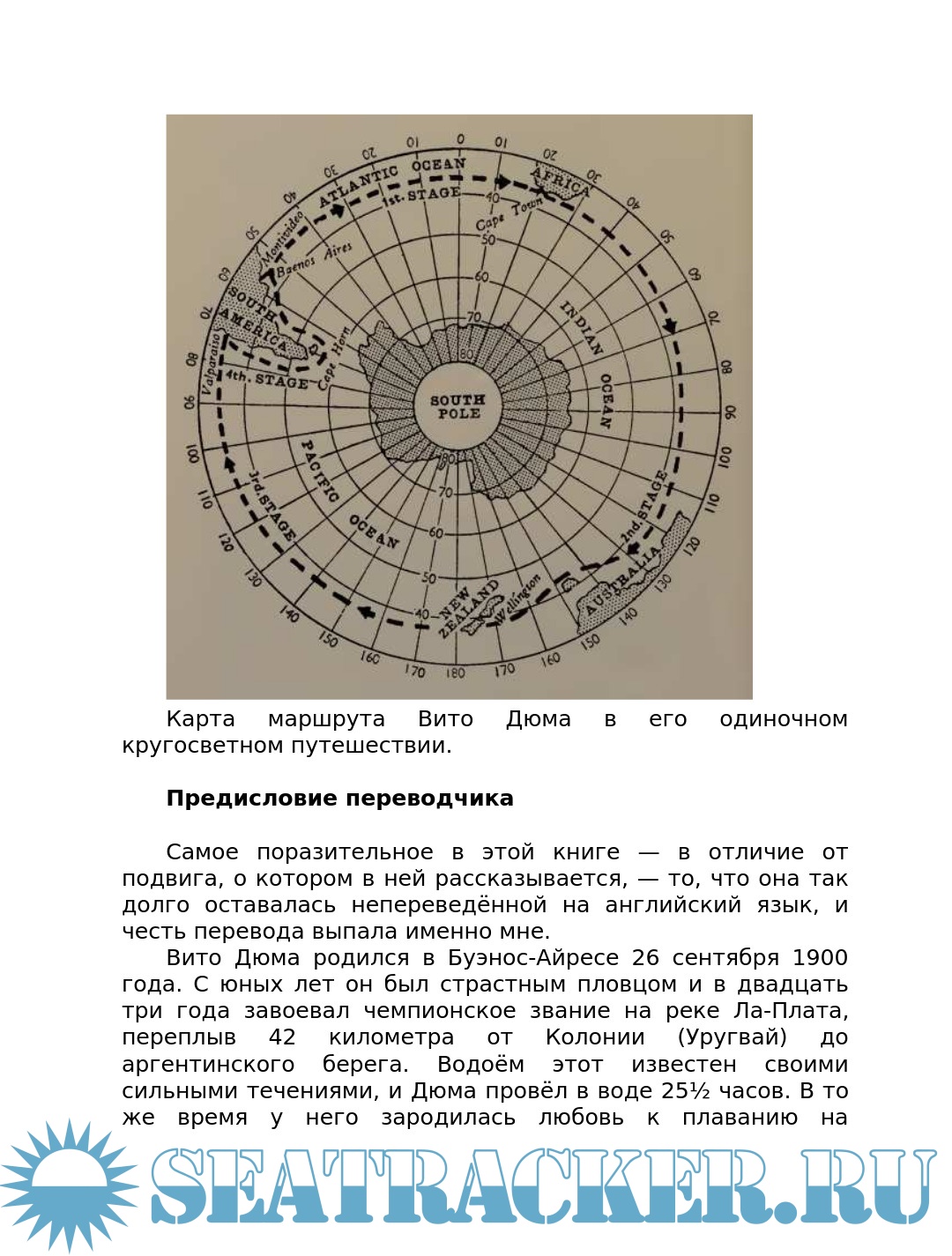 Описание: Дюма Вито (Dumas Vito) (1900-1965) аргентинский мореплаватель. В 1931 году во Франции приобрел яхту, названную им «Лег», и на ней в одиночку дошел из Аркашона (Франция) до родного Буэнос-Айреса. В 1942 году 27 июня на яхте «Лег II» он вышел из Буэнос-Айреса и через Кейптаун, Веллингтон, Вальпараисо, мыс Горн, Мар-дель-Плата совершил кругосветное одиночное плавание в ревущих сороковых широтах, завершив своё плавание 7 сентября 1943 года в Буэнос-Айресе. В дальнейшем он ещё дважды совершал трансатлантические одиночные плавания. Эта книга о его рекордной кругосветке, дополненная описанием плавания 1932 года.
