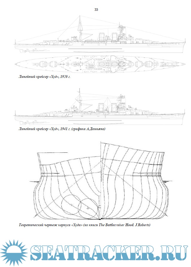 Вошедший в строй в 1920 г. «Худ» был построен с учетом опыта Ютландского сражения и до 1930-х годов являлся самым крупным военным кораблем мира. Будучи на момент появления одним из наиболее сбалансированных кораблей, к началу Второй мировой войны «Худ» устарел и его стало опасно подставлять под удар современных быстроходных линкоров, которые не только превосходили его в скорости, но и имели лучшее вооружение и бронирование. Этого можно было избежать, если бы «Худ» прошел модернизацию, однако он был лицом британского флота и нужен был в строю, а не в доке, что и предопределило его судьбу — в первом же бою с современным линкором «Худ» погиб.