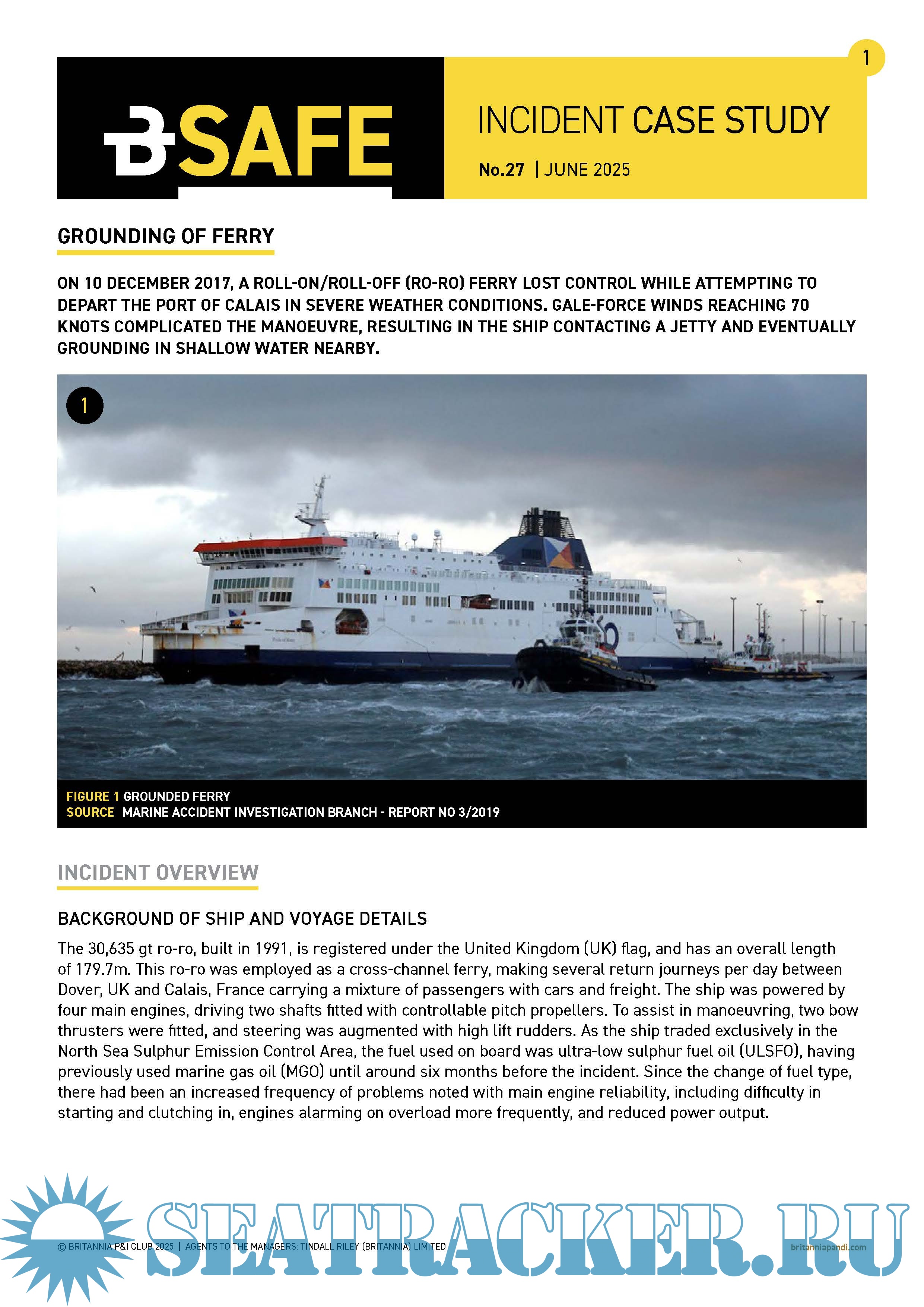 BSAFE INCIDENT CASE STUDY 27: GROUNDING OF FERRY. A roll-on/roll-off (ro-ro) ferry lost control while attempting to depart the Port of Calais in severe weather conditions.