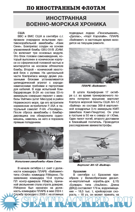 Год выпуска: 2025 Язык: Русский Автор: группа авторов Жанр: Периодическое издание (журнал) Формат: PDF Качество: Изначально компьютерное (eBook) Количество страниц: 108 Описание: «Морской сборник» - официальный ежемесячный журнал Военно-морского флота Российской Федерации, но это не просто журнал, каких сегодня немало. «Морской сборник» - это срез отечественной истории, вместившей в себя её перипетии за последние полтораста лет и даже больше. В «Морском сборнике» публиковались также работы принесших славу России академиков, кораблестроителей, химиков, гидрографов и океанографов и многих других выдающихся деятелей науки. «Морской сборник», созданный для «распространения полезных сведений между служащими во флоте и вообще в морской службе», всегда стремился сообщать военнослужащим флота СССР и России об опыте передовых кораблей и соединений.