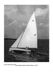 it is only the sight of a boat with a bent m a s t that stands in the m e m o r y ; for m a n y it is the sight of beauty under sail, and the epitome of o n e design racing. Close to one thousand names appear in the index, a real testament to the S Boats popularity and only the n a m e s of owners or h e l m s m e n are included. That so m a n y of o n e hundred and three boats k n o w n to b e built are still around today, sixty-seven at last count, makes them unique a m o n g all boats. T h e youngest S Boat turns fifty-two this year.
