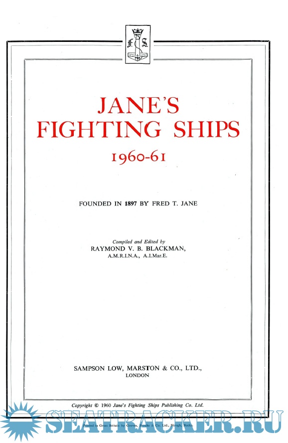 Year: 1961 Language: English Author: Raymond V.B. Blackman Genre: Historical Publisher: Jane's Information Group Format: PDF Quality: Scanned pages Pages count: 520 Description: "Jane's Fighting Ships" is your essential reference to the changing capabilities of modern navies and coast guards, their ships and maritime aircraft in service and under construction. There are authoritative inventories for 164 navies around the world complete with comprehensive details of: displacement and dimensions, main machinery, speed and range, weapons systems and sensors, construction and modernization programs, latest operational status and strength of fleet including sales to other navies. In addition, there is an annual executive overview of naval highlights worldwide, flags and ensigns, ranks and insignia, senior appointments and personnel numbers. It is intended for: armed forces, defense ministries, maritime SAR organizations, naval training establishments, coastguards, marine police, naval weapons manufacturers, shipbuilders, port authorities, maritime and safety agencies, defense analysts and academics, media.