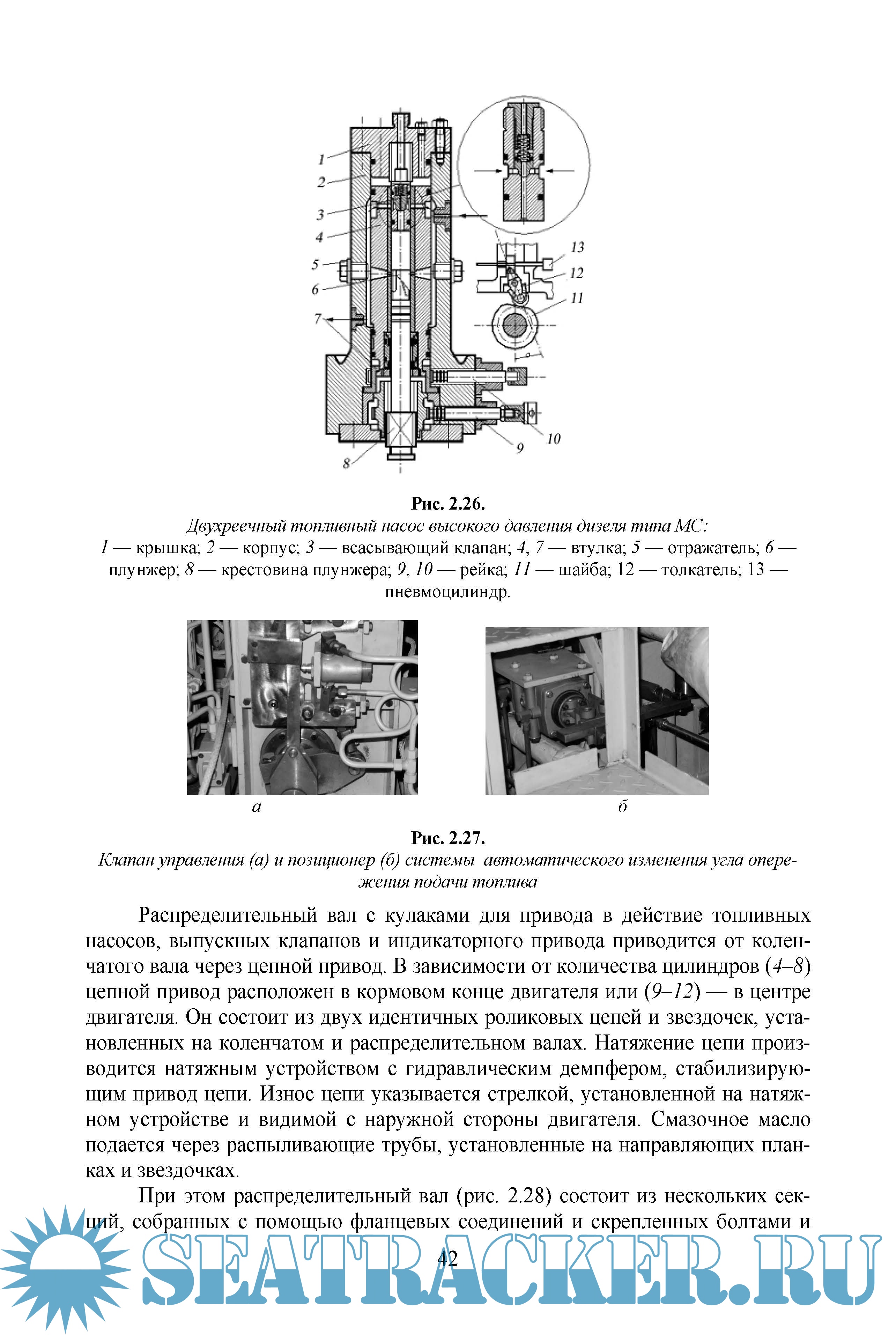 Описание: Рассмотрены типы и конструктивные особенности основных моделей современных судовых двигателей, выпускаемых зарубежными дизелестроительными фирмами. Представлен обширный графический материал по элементам конструкций и деталям цилиндропоршневой группы, а также топливной аппаратуры рассматриваемого класса судовых дизелей. Графический материал по конструкциям отдельных деталей двигателей значительно расширяет описательную часть.