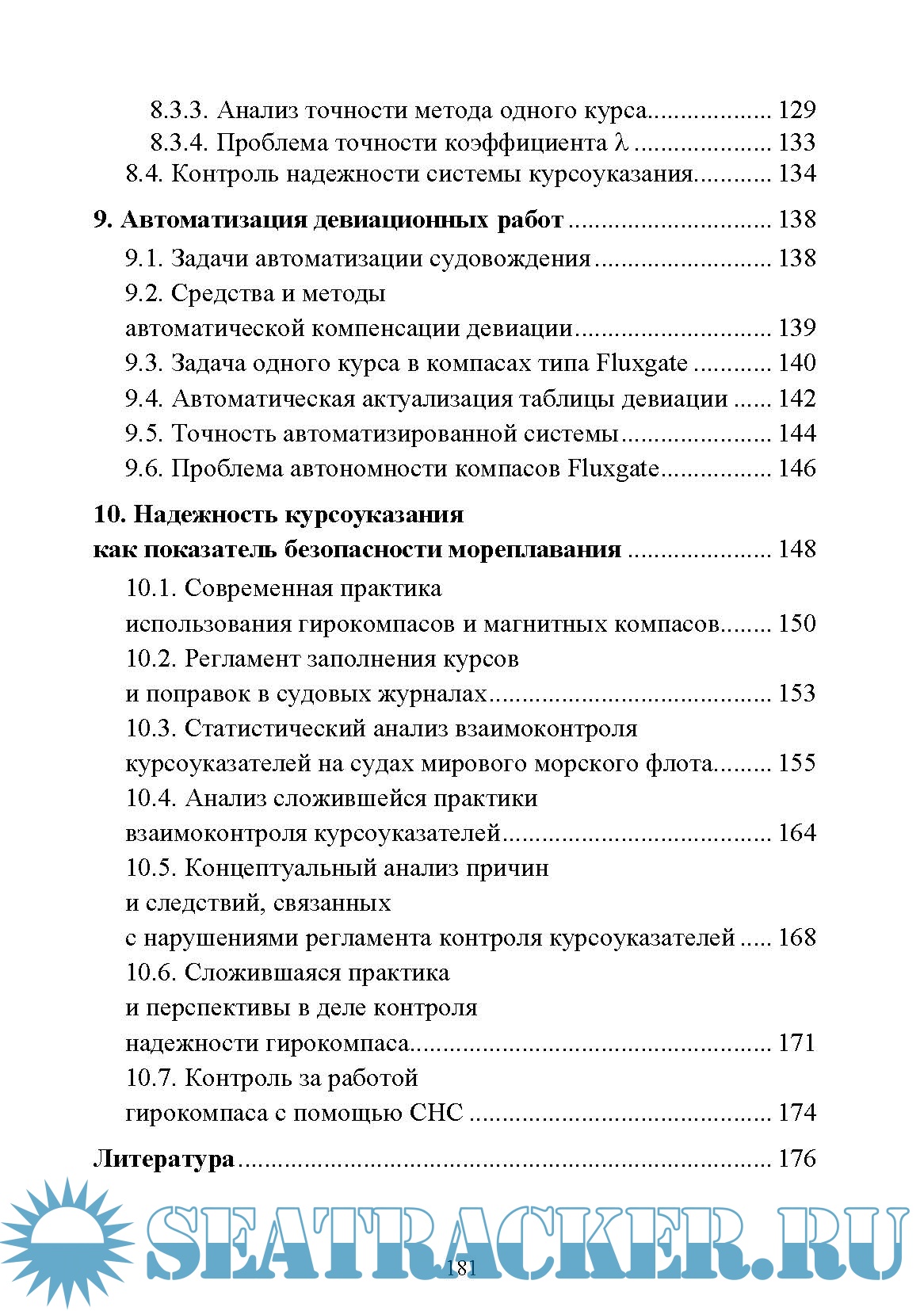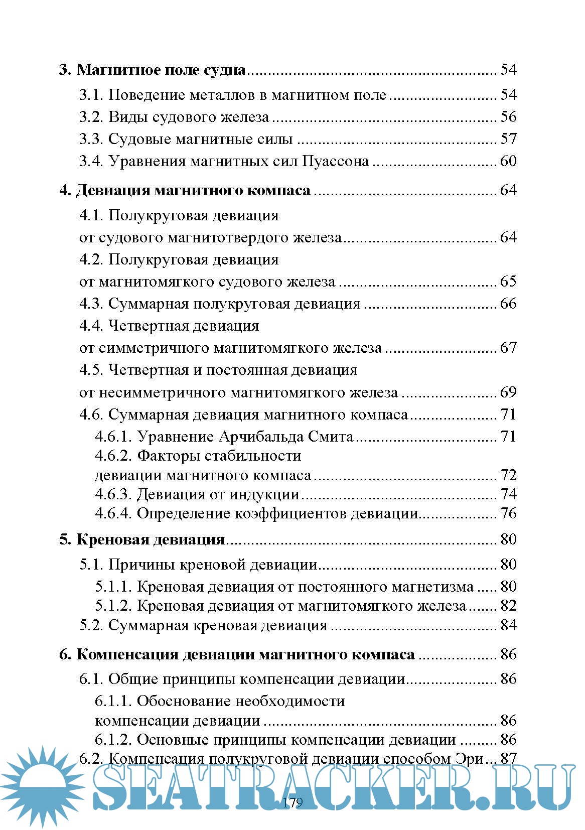Подробно описан принцип действия магнитного электронного компаса типа Fluxgate. Рассмотрены вопросы повышения точности магнитных компасов, перспективные методы уничтожения девиации и полной автоматизации девиационных работ. Рассмотрены вопросы взаимного контроля гирокомпасов и магнитных компасов, состояние дел в этом вопросе на современном мировом торговом флоте.