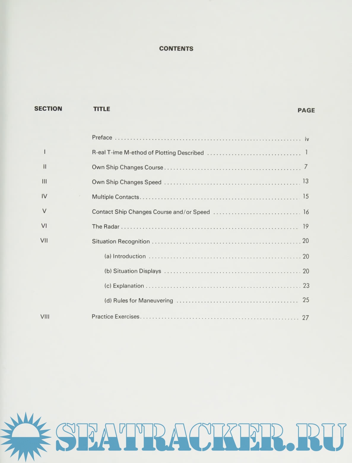 Description: This manual/workbook provides the means for an operator to develop an at-a-glance capacity on a stabilized relative motion radar. Once the system of Situation Recognition has been achieved and mastered, a multitude of targets can be handled safely and surely, and collision avoidance becomes quite simple. The real method of plotting equips the deck officer to pass the Coast Guard’s radar observer test.