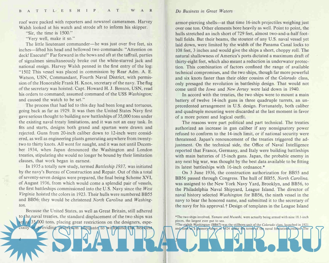 Year: 1986 Language: English Author: Ivan Musicant Genre: History of the Navy Publisher: Harcourt Brace Jovanovich, Publishers Format: PDF Quality: Scanned pages Pages count: 404 Description: Washington was the second of a new class of extremely fast and powerful battleships built after the collapse of the naval limitation treaty. The ship was laid in 1937, commissioned just seven months before Pearl Harbor, and decommissioned after seven very active years. Washington saw service in the North Atlantic, then in all the major campaigns of the Pacific. Musicant, using primarily the ship's log and interviews with dozens of crewmen, has put together an absorbing chronicle of naval war. This is shipboard history; anything that didn't happen on or to the Washington gets short shrift. Musicant is also the author of a history of armored cruisers. Highly recommended for naval buffs and subject collections.
