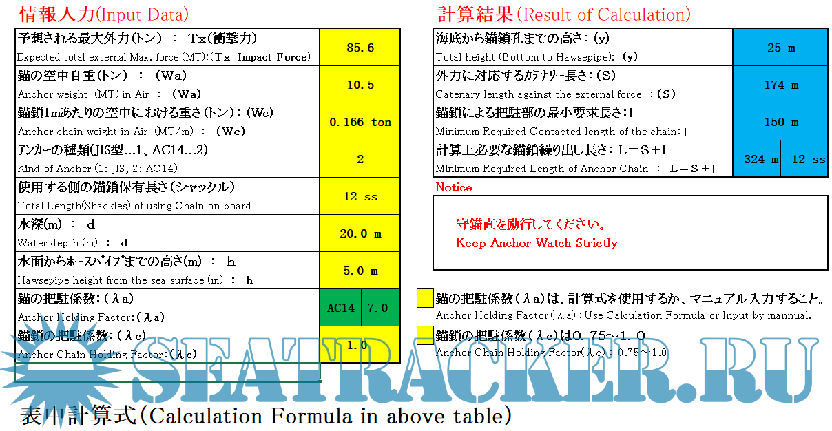 Description: This is a excel calculation form consists of two sheets which was found in the Club website; It can be used as a reference tool before or after dropping anchor at any exposed anchorage.