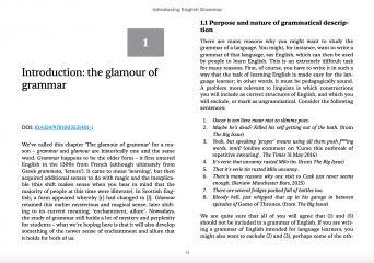 Description: Introducing English Grammar introduces readers to the methodology and terminology needed to analyse English sentences. The approach taken is in line with current research in grammar, a particular advantage for students who may go on to study syntax in more depth. All the examples and exercises use real language taken from both standard and non-standard varieties, geographical areas and dialects, and include excerpts from Australian and British newspaper articles. Students are encouraged to think about the terminology as a tool kit for studying language and to test what can and cannot be described using these tools.