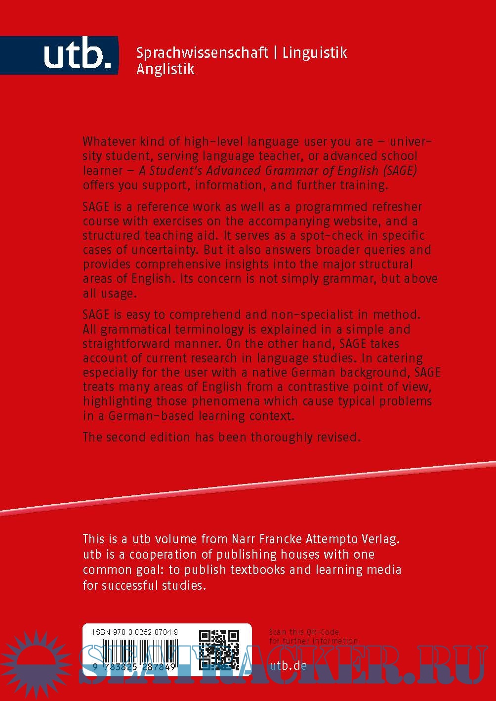 SAGE is easy to comprehend and non-specialist in method. All grammatical terminology is explained in a simple and straightforward manner. In catering especially for the user with a native German background, SAGE treats many areas of English from a contrastive point of view, highlighting those phenomena which cause typical problems in a German-based learning context.