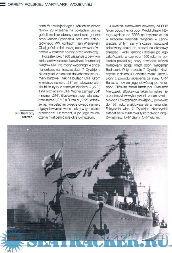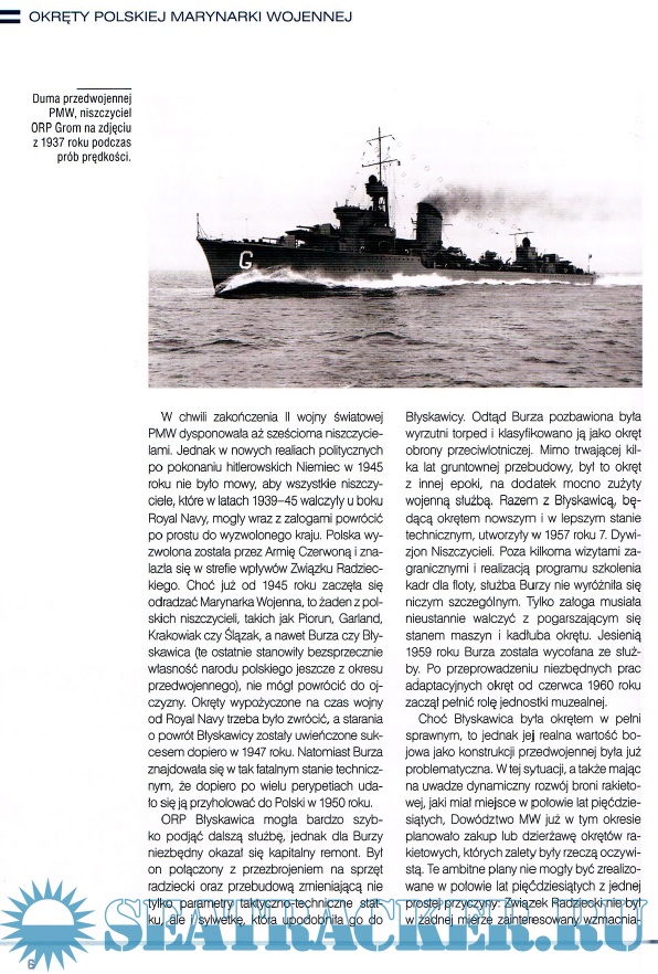 Powojenne niszczyciele w sluzbie pod bialo-czerwona bandera Niszczyciele proj. 30bis - charakterystyka taktyczno-techniczna Sluzba niszczyciela ORP Grom II Sluzba niszczyciela ORP Wicher II Ozena niszczycieli Grom i Wicher Bibliografia wybrana Modele niszczycieli proj. 30bis - ORP Grom II i ORP Wicher II
