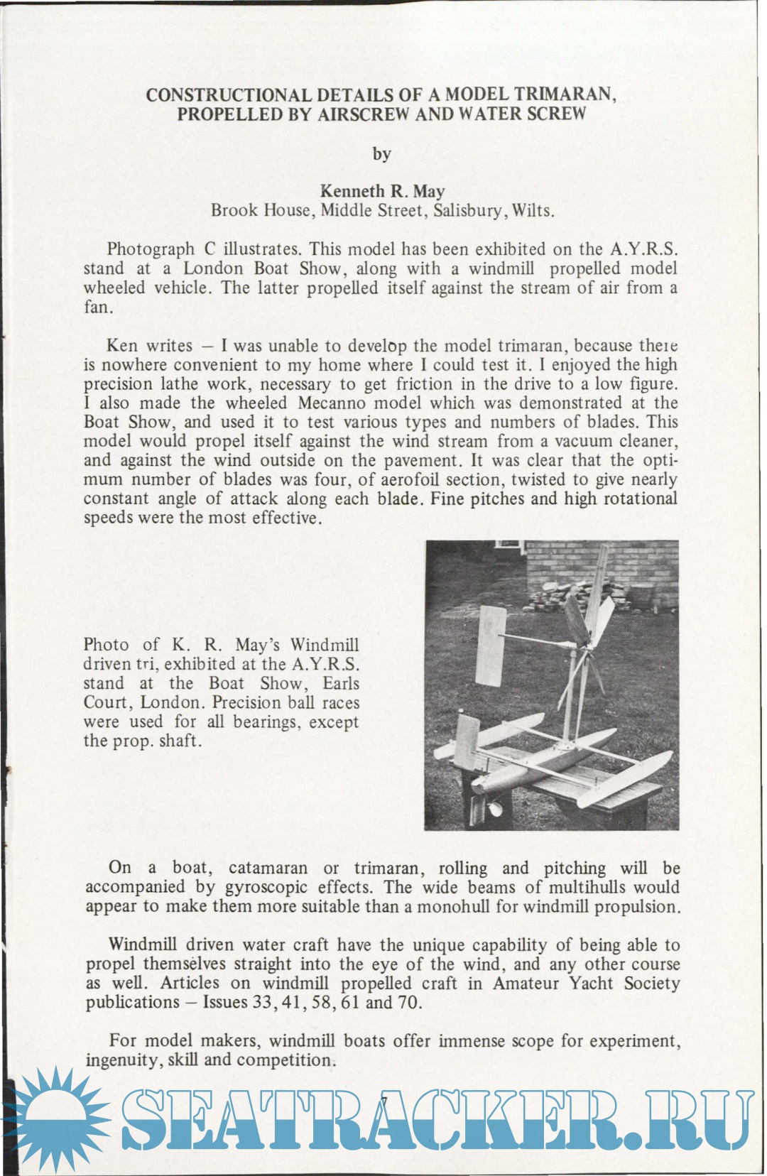 Year: 1979 Language: English Author: A.Y.R.S. Genre: Periodical publication Publisher: A.Y.R.S. Format: PDF Quality: Scanned pages Pages count: 68 Description: The AYRS is a UK registered Educational Charity (No 234081) dedicated to finding out how to make yachting better (faster, more fun, whatever you want it to be). Our members run from sober sided professional yacht designers and builders to bearded eccentrics full of ideas that they cannot make work.From our members have come the modern sailing multihulls, self-steering gear, sailboards, a flock of successful sailing hydrofoils, the World Speed Sailing Record system, etc. Now people are taking off with kiteboats and autogyro-sails, and the first amphibious bicycle.