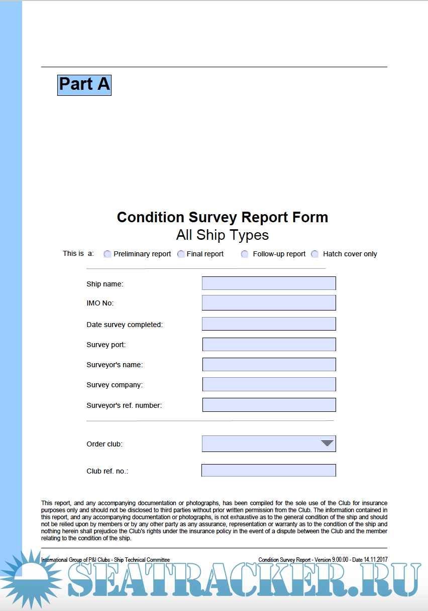 IG SHIP CONDITION SURVEY REPORT FORM – PART A – ALL SHIP TYPES