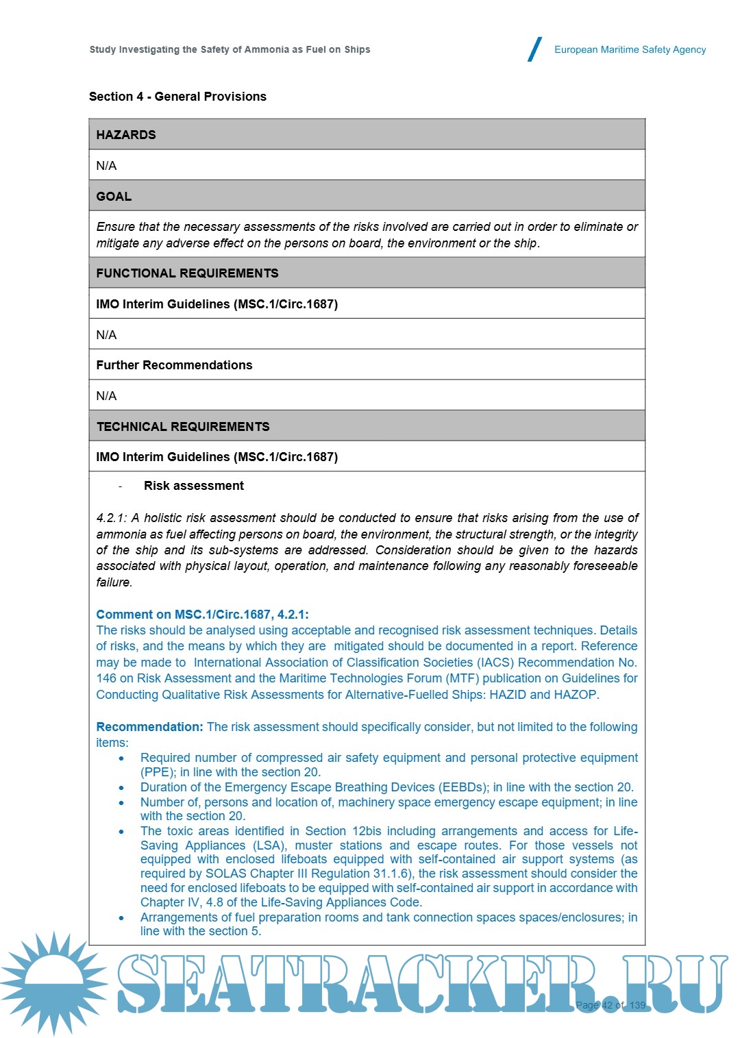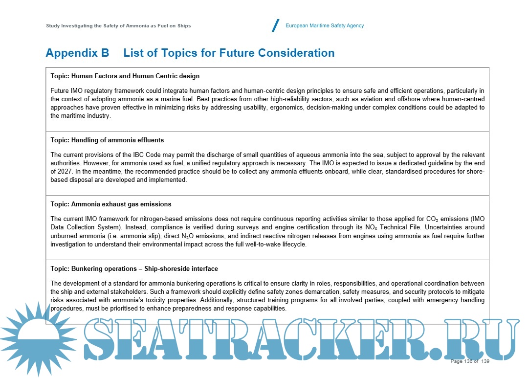 This Guidance builds upon the existing MSC.1/Circ.1687 and includes several proposed enhancements. Feedback collected through a survey and an online workshop has been integrated into the finalised document presented in Appendix A of this report. This feedback emphasises the necessity of a comprehensive understanding of ammonia’s properties to effectively mitigate the safety risks associated with its use as a marine fuel.