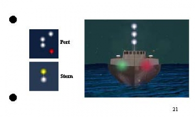 A deck of flashcards depicting the 62 rules of the road relevant to the rules portion of the U. S. Coast Guard license exams. Answers on the back of each card. Covers lights, shapes, steering rules, signals.