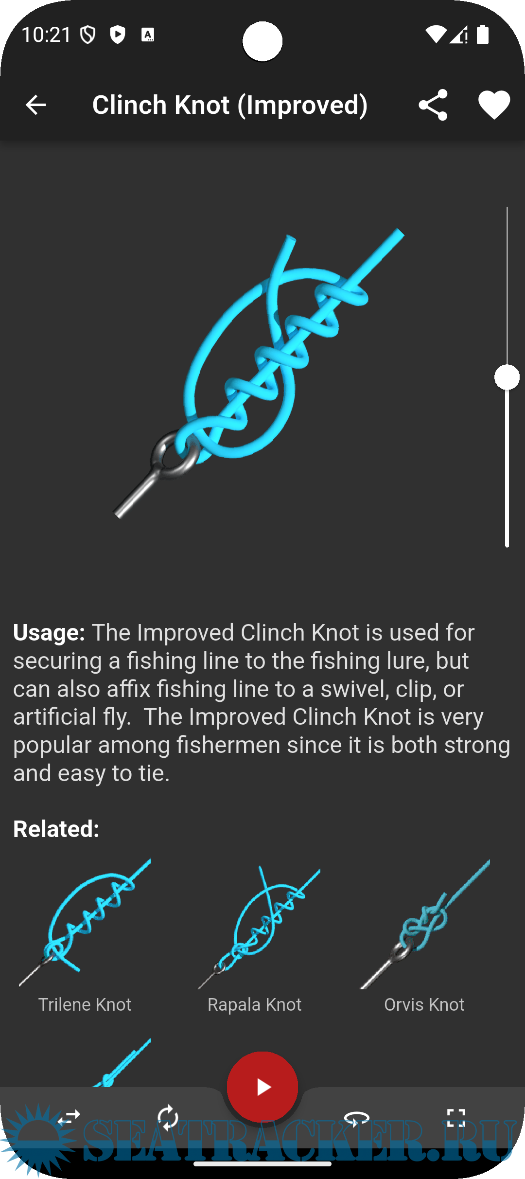 •  Watch knots tie themselves and pause or adjust the speed of the animation at any time