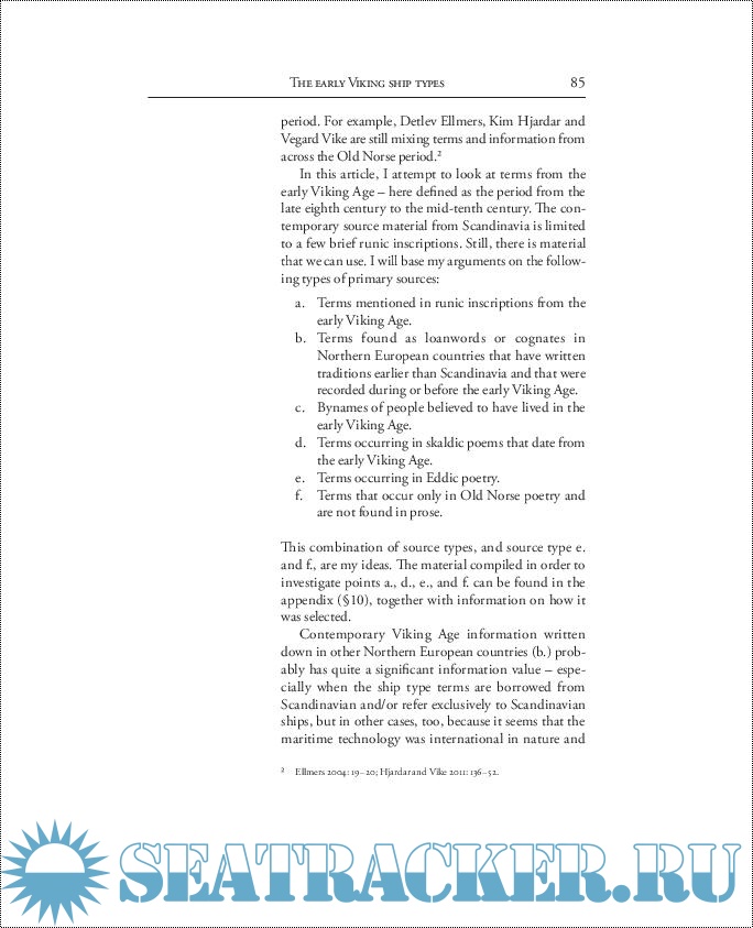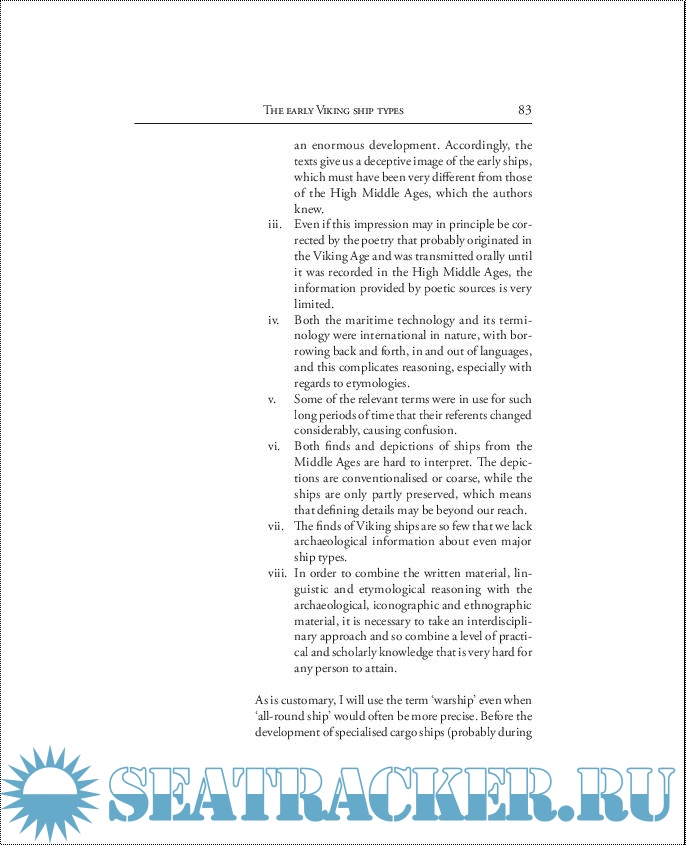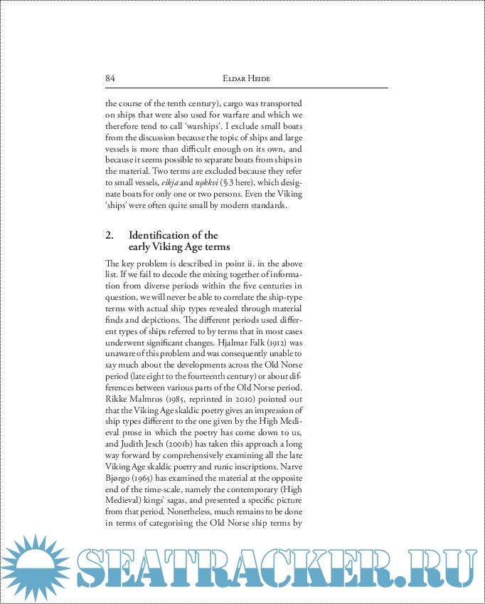 Year: 2012, [/url] Language: English Author: [url=https://seatracker.me/tracker.php?nm=Eldar+Heide]Eldar Heide Publisher: Sjøfartshistorisk Årbok Edition: 2nd Format: PDF Quality: eBook Pages count: 78 Description: In this title the author attempts to sift out from Old Norse (ON) written sources the early Viking Age terms for ship types and to link them to actual ships and ship depictions from that period. The author argues that knǫrr, beit, skeið, kjóll, askr, and elliði were the main ship types of the early Viking Age in Scandinavia, at least in the west, and that knerrir referred during this period to warships like Oseberg and only later to cargo ships like Skuldelev 1. ‘A ship with a backwards curved stem’ seems to have been the original meaning of knǫrr. Kjólar were heavy, all-round ships like Gokstad, the author argues, and beit were very early ships with angular stems known from depictions. Skeiðar were low, narrow ships like Ladby. Askar were also very early, small, light ships with stitched planking, whereas elliðar were combined inland / sea vessels, originally Eastern European. - The main ship types of early Viking Age were knorr, beit, skeið, kjóll, askr, and elliði. - Knorr originally meant 'warship' with a backward-curved stem, later shifting to 'cargo ship.' - Kjóll referred to heavy all-round ships like Gokstad, used for long-distance transport. - Elliði likely represented a flat-bottomed vessel for combined inland and sea use, borrowed from Slavic cultures. This autor aims to connect Old Norse ship terminology to archaeological findings from the early Viking Age.