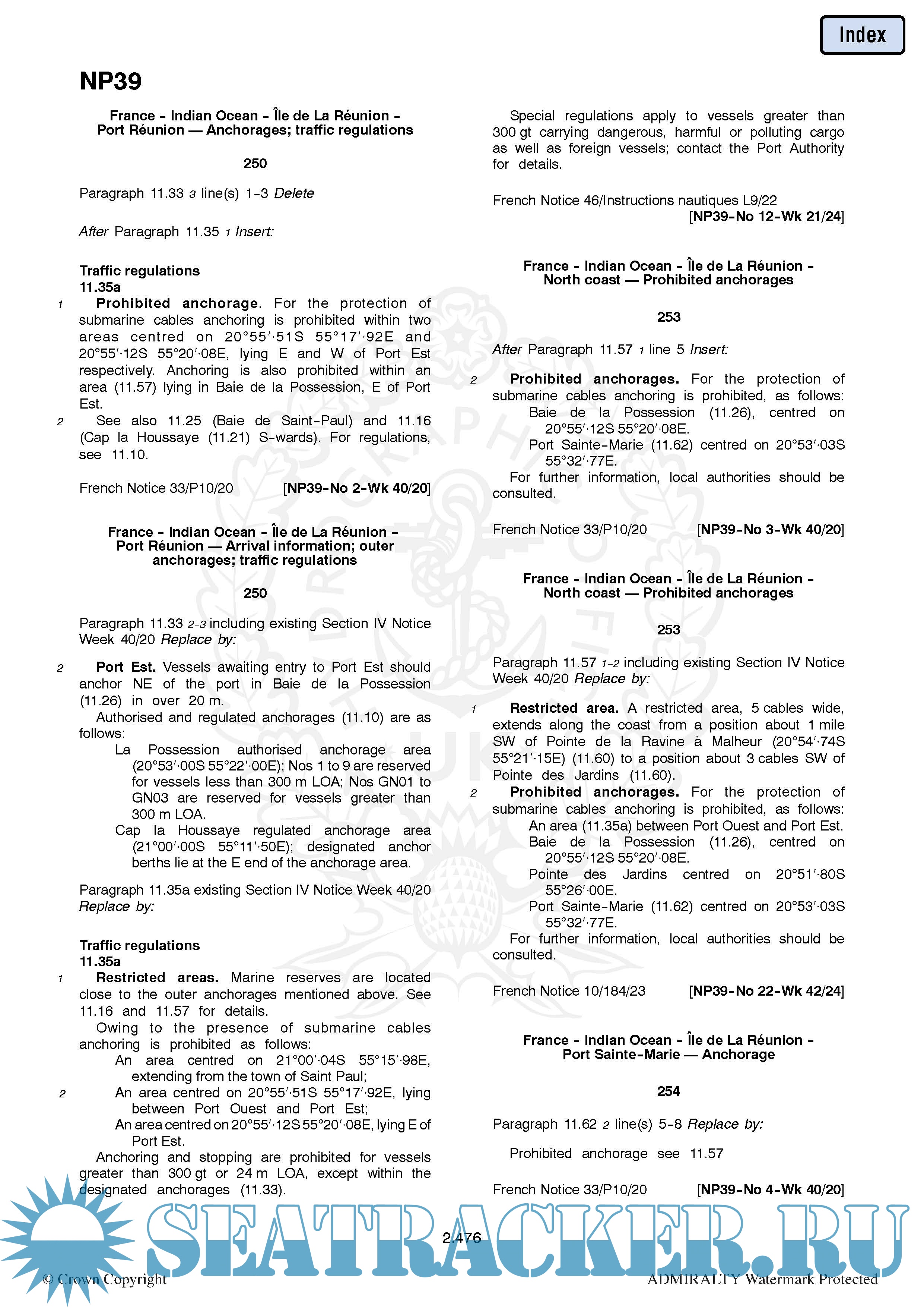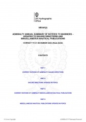 To supplement Weekly NMs, the UKHO produces an Annual Summary of Notices to Mariners (NP247). This publication contains the Annual Statutory Notices to Mariners, a summary of Temporary and Preliminary Notices to Mariners still in force at the start of the year, and a Cumulative Summary of Amendments to ADMIRALTY Sailing Directions. The paper version of the Annual Summary of Notices to Mariners is published annually in January.