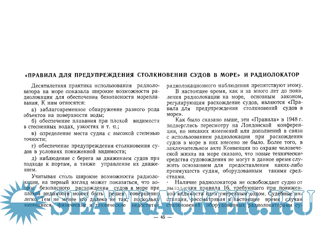 В ней приводится полный текст «Правил», принятых на Лондонской международной конференции по охране человеческой жизни на море в 1948 г.