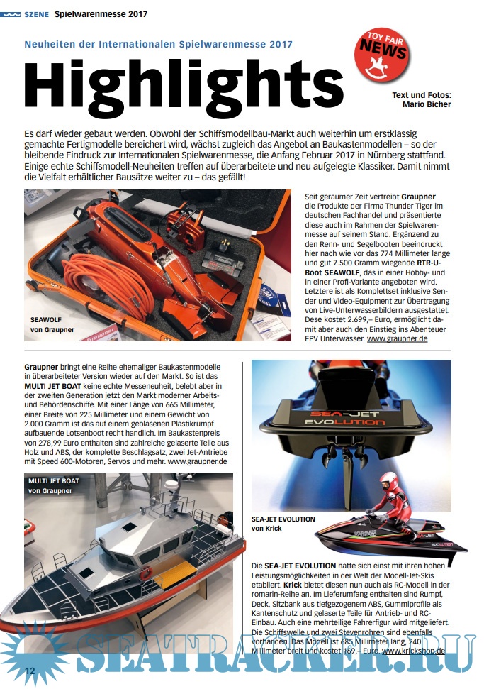 Year: 2017 Language: German Author: Mario Bicher (Redaktor) Edition: 2017-04 Format: PDF Quality: eBook Pages count: 76 Description: SchiffsModell is the magazine for those who enjoy radio controlled and fully functional Modellnachbauten of ships of all kin