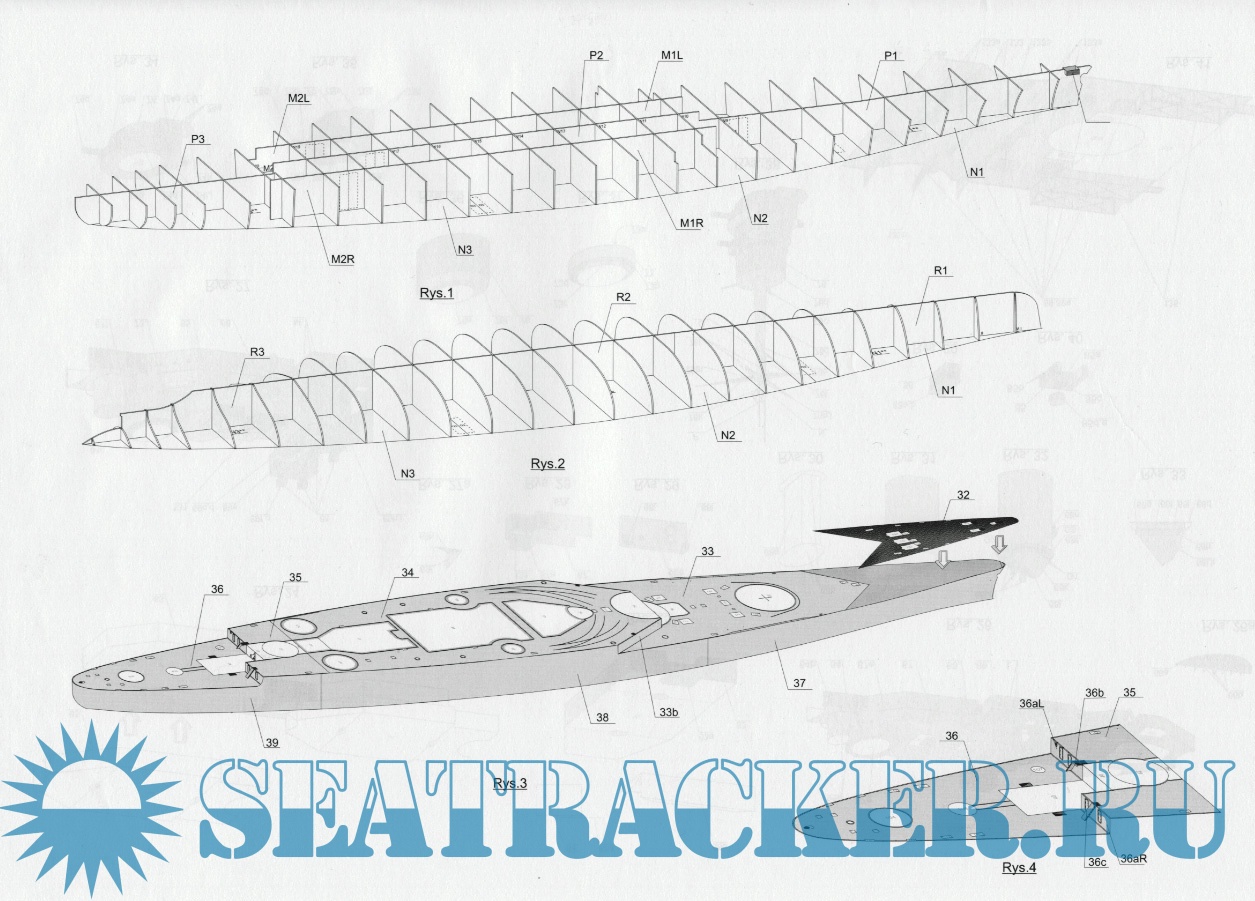 30 листов цветных выкроек и инструкций для изготовления бумажной модели французского линкора Dunkerque в масштабе 1:200Скриншоты
