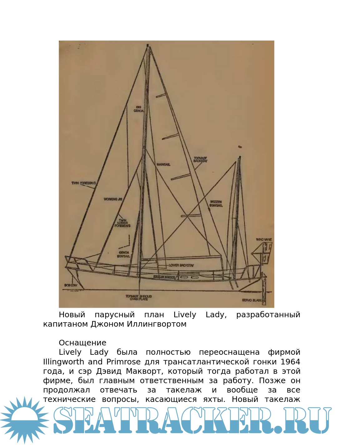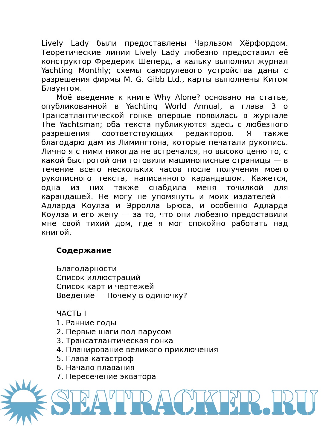 Год выпуска: 1969 Язык: Русский Автор: Роуз А. Жанр: История Издательство: Pan Books Ltd Формат: PDF, ePUB, FB2 Качество: Изначально компьютерное (eBook) Количество страниц: 232 Описание: Перевод любительский. - С оригинала: My 'Lively Lady'. London: Pan Books Ltd. 1969. – 220 p. Роуз Алек (Rose Alec, Sir) (1908-1991) - был английским торговцем фруктами, который после службы в Королевском флоте во время Второй мировой войны увлекся любительским одиночным парусным спортом. Учасник второй трансатлантической гонки одиночек 1964 года на яхте Lively Lady. На ней же он совершил кругосветное путешествие через мысы Доброй Надежды и Горн всего с двумя остановками в 1967-68 годах, вторым после Френсиса Чичестера и был посвящен в рыцари королевой. Об этих плаваниях и повествует его книга.