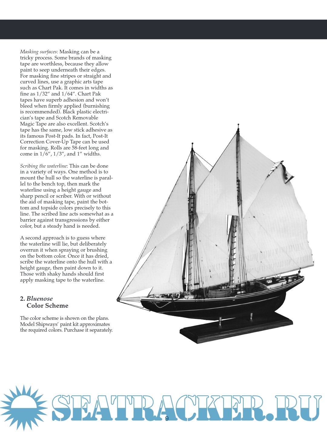 Year: 1997 Language: English Author: Evans B. Genre: Manual Publisher: Model Shipways Format: PDF Quality: eBook Pages count: 44 Description: Experience the rich history of the iconic Bluenose fishing schooner with this meticulously crafted 1:64 scale model kit from Model Expo. This authentic representation, featuring plank-on-bulkhead construction with laser-cut basswood parts, allows you to build a true-to-life replica of the legendary vessel that once ruled the rough waters off Newfoundland. The kit includes flexible basswood strips for hull planking, wooden blocks and deadeyes, brass fittings, and Britannia metal details, ensuring an impressive and accurate model. With three diameters of rigging line and cotton sailcloth included, your completed model will stand at an impressive 26.5 inches tall and 32 inches in length, making it a stunning addition to any nautical enthusiast's collection. Detailed instructions and a parts list are included to guide you through the build process. This classic model ship kit is perfect for adult hobbyists seeking an engaging and rewarding build experience.