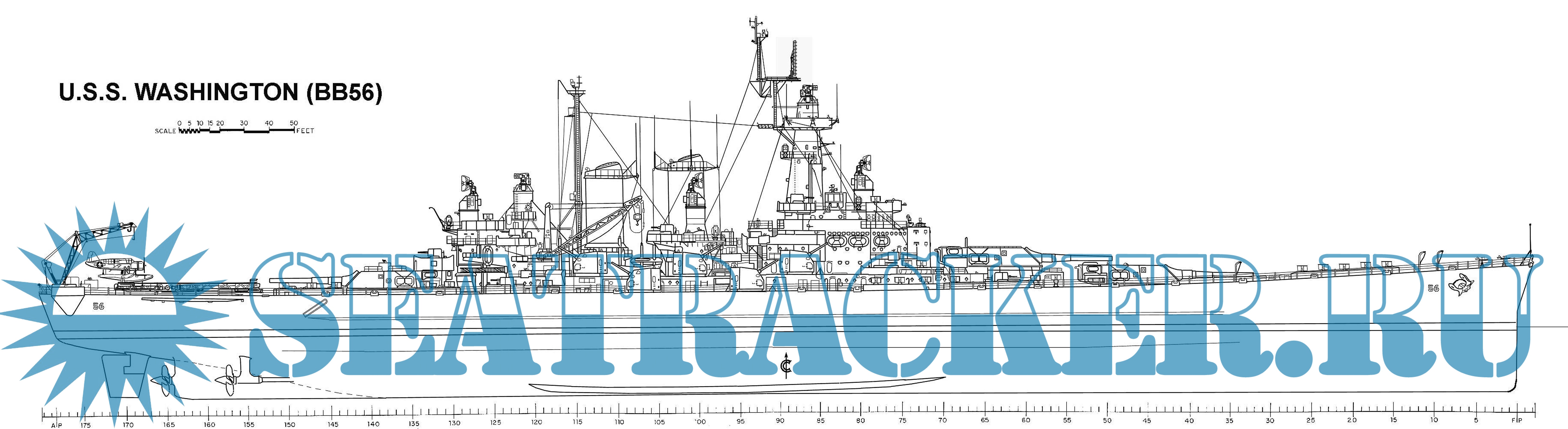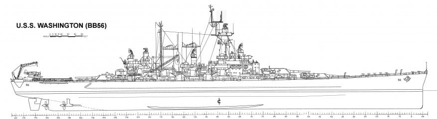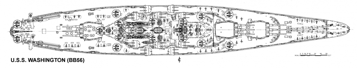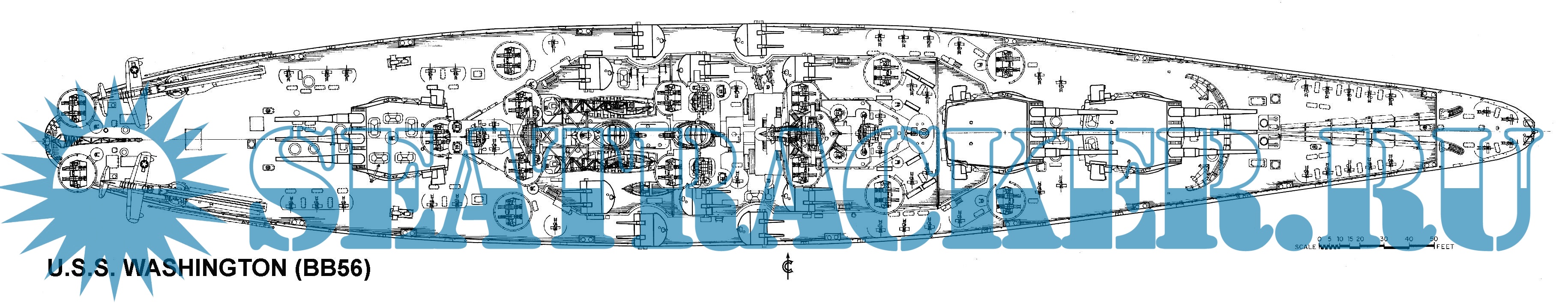 Описание: 9 листов чертежей линкора США ВВ56 USS Washington