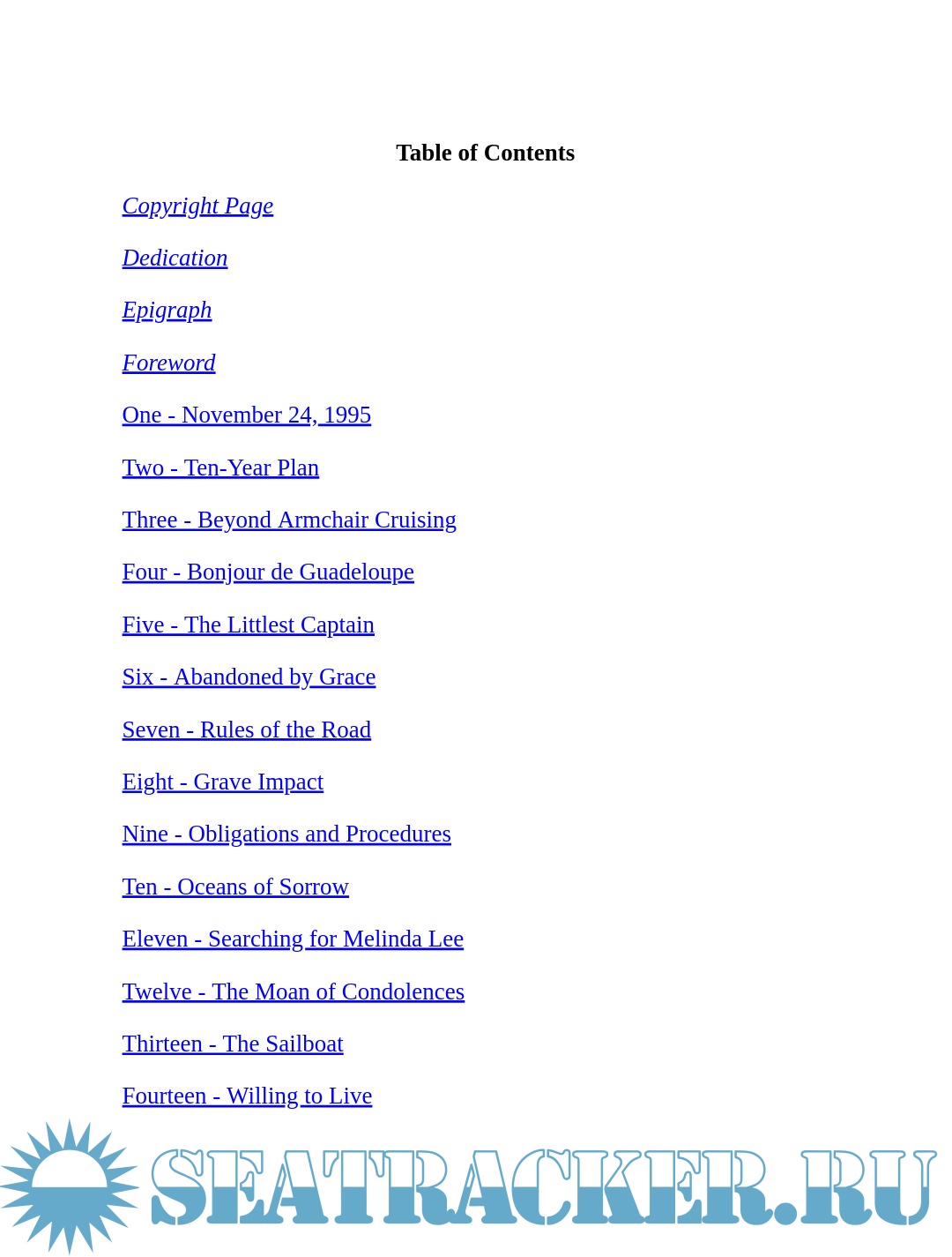 Year: 2007 Language: English Author: Rumberg H. Genre: History Publisher: Penguin Publishing Group ISBN: 978-1-101-01614-5 Format: PDF, ePUB Quality: eBook Pages count: 226 Description: An international bestseller. A remarkable true story of one woman's courage. In 1993, Judith and Michael Sleavin and their two children set out to sail around the world. Three years into their incredible journey, a nearby freighter altered its course by a mere ten degrees-and everything changed... After forty-four hours in the icy water clinging to an overturned dinghy, her back broken and paralyzed below the waist, Judith miraculously survived, winding up in a small community on the New Zealand coast. Gripping, unbelievable yet true, Judith's story of courage, survival, and retribution is alternately heartrending and uplifting. It's also a story of unbreakable bonds, of shattering loss, and of one woman reborn through the strength of friendship and the profound love of strangers who became family.