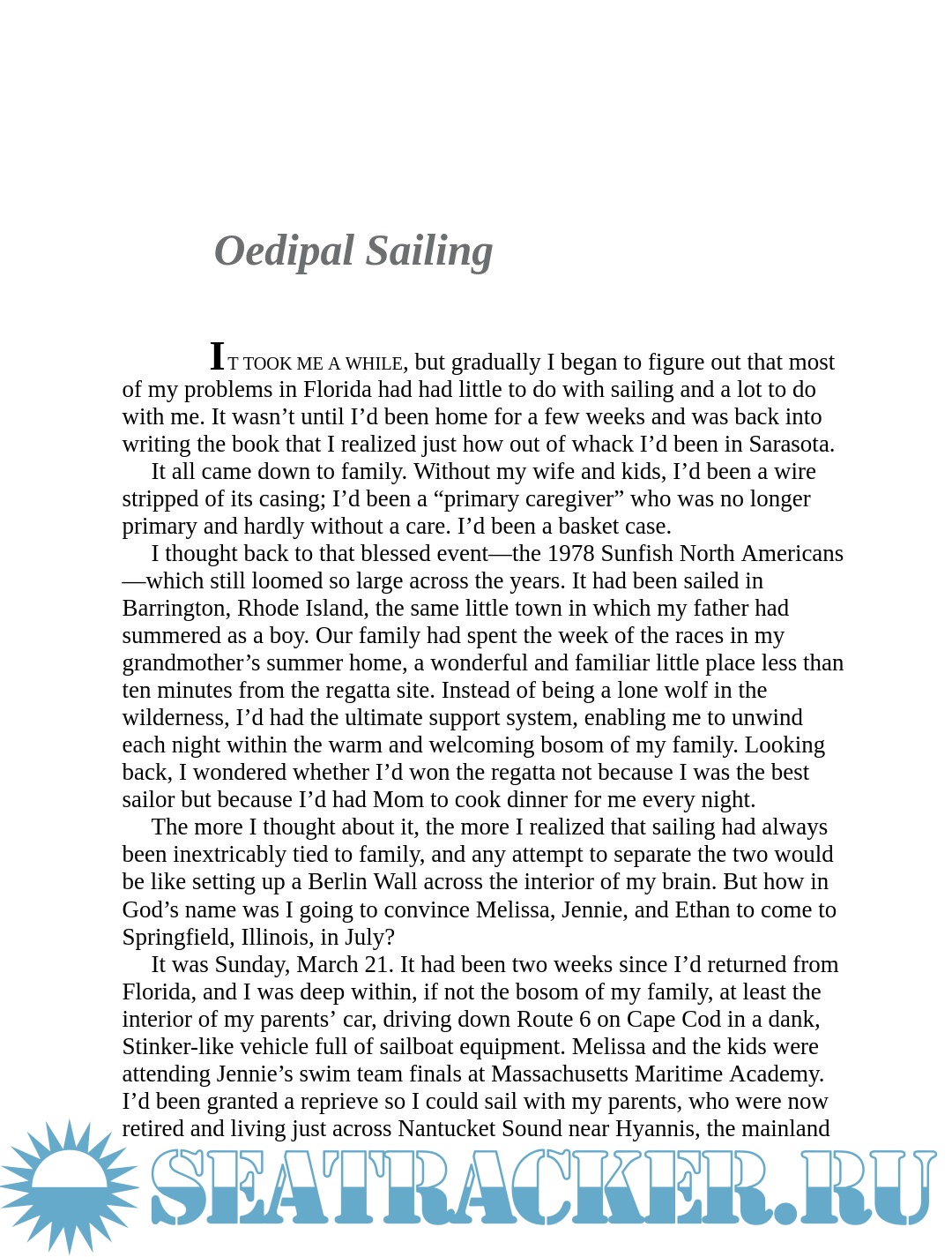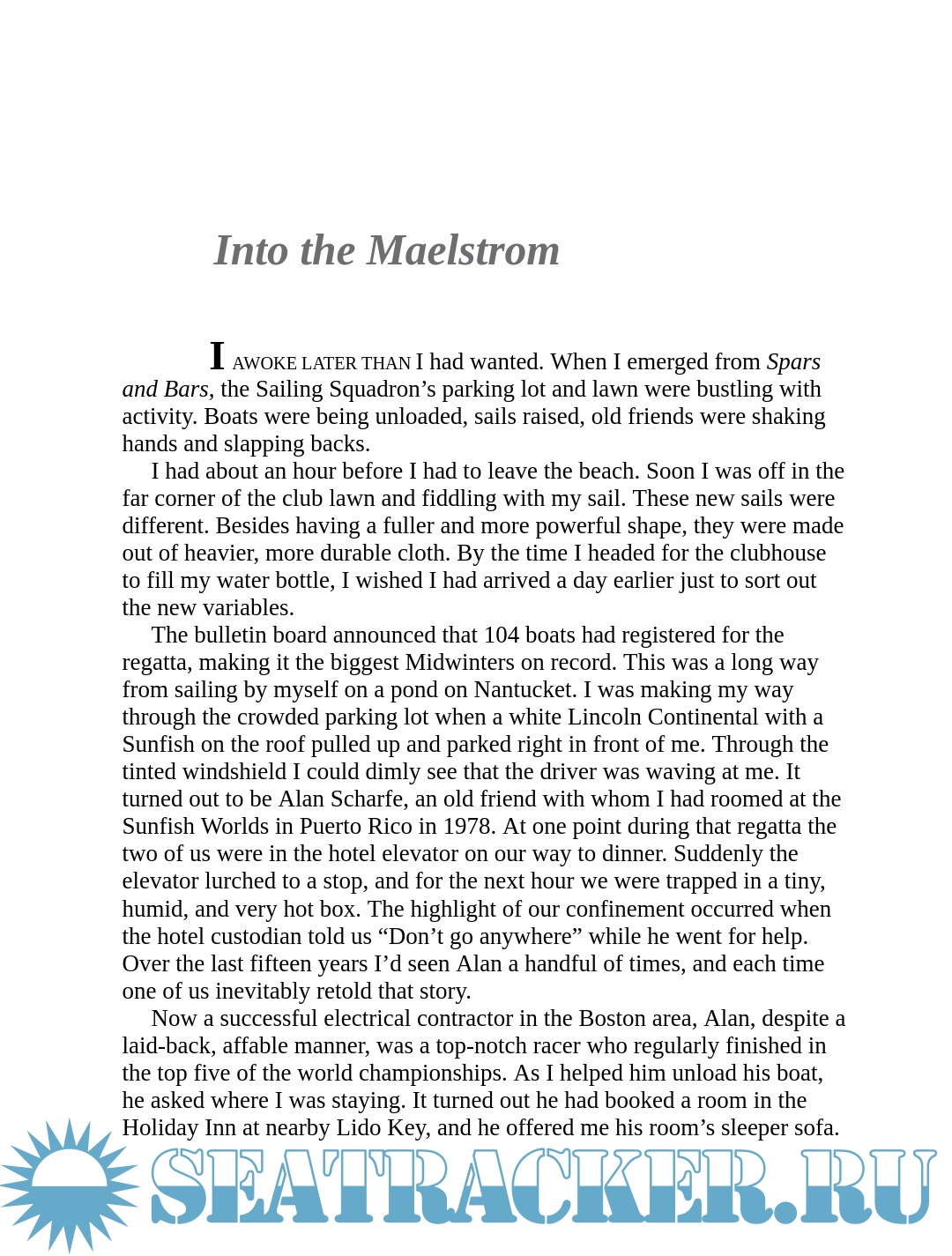 With the bemused approval of his wife and children, Philbrick used the off-season on the island as his solitary training ground, sailing his tiny Sunfish to its remotest corners, experiencing the haunting beauty of its tidal creeks, inlets, and wave-battered sandbars. On ponds, bays, rivers, and finally at the championship on a lake in the heartland of America, he sailed through storms and memories, racing for the prize, but finding something unexpected about himself instead.