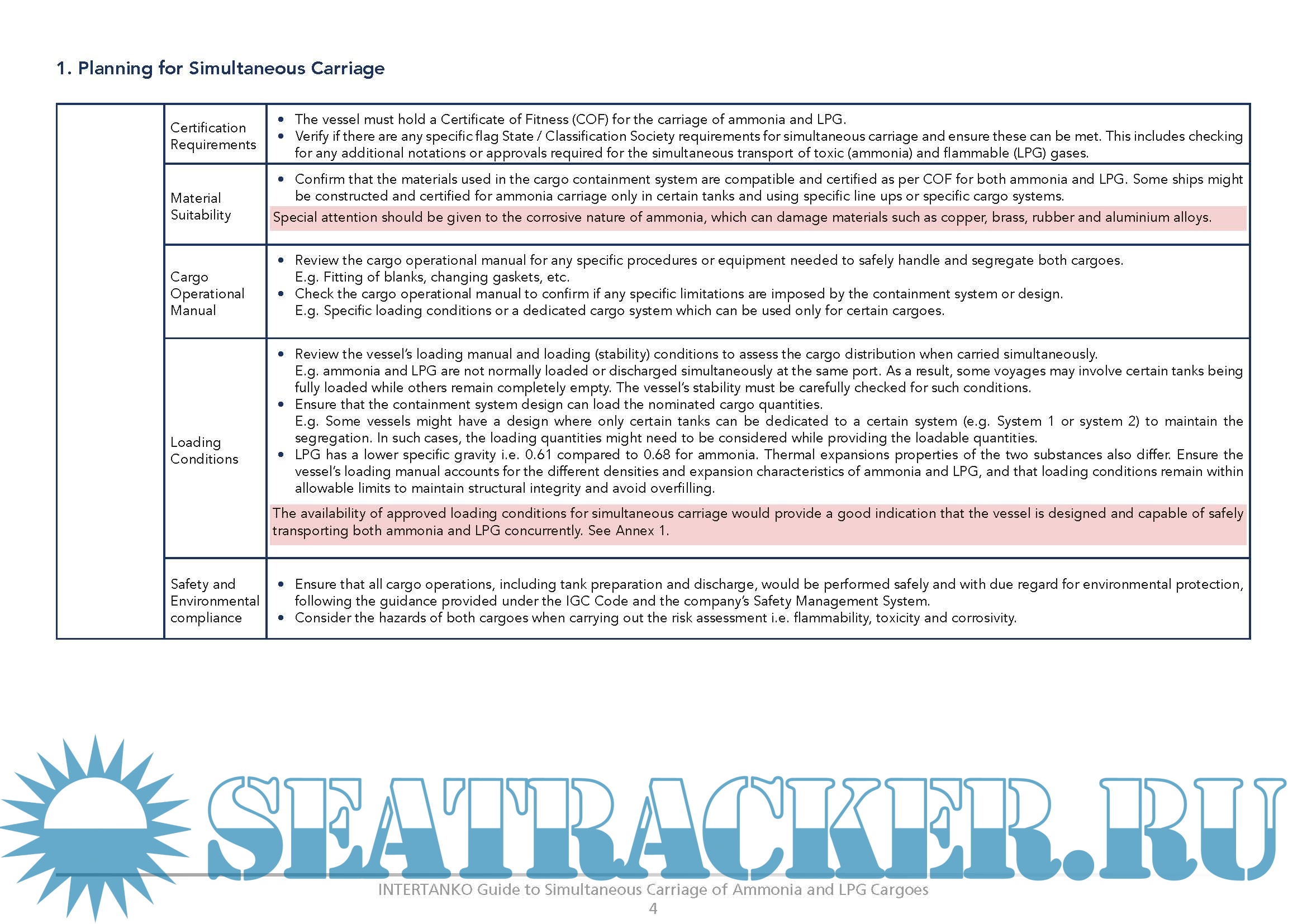 NH3 but are standard cargo-handling practices. They have been included to highlight their importance