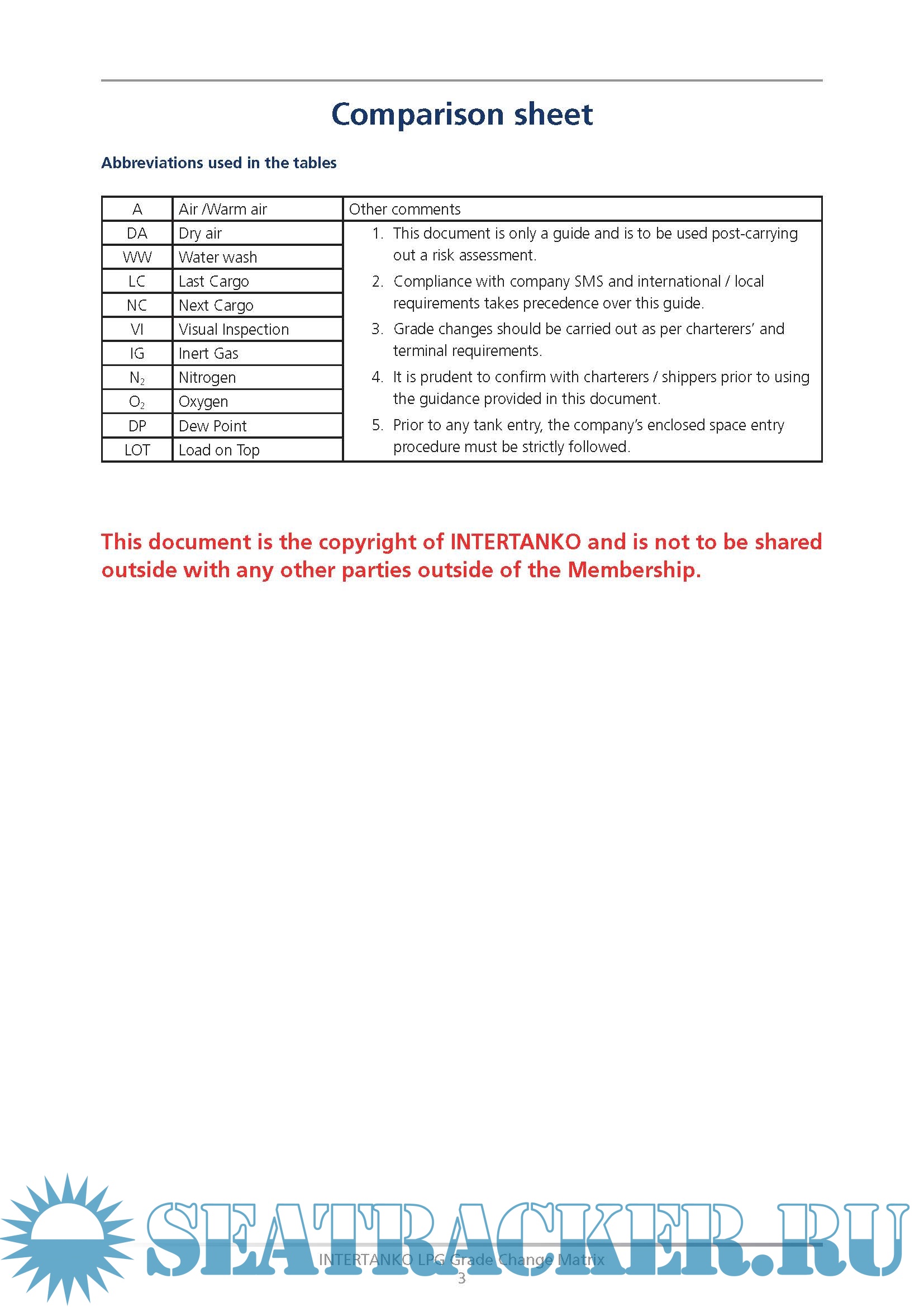 This document is the copyright of INTERTANKO and is not to be shared outside with any other parties outside of the Membership.