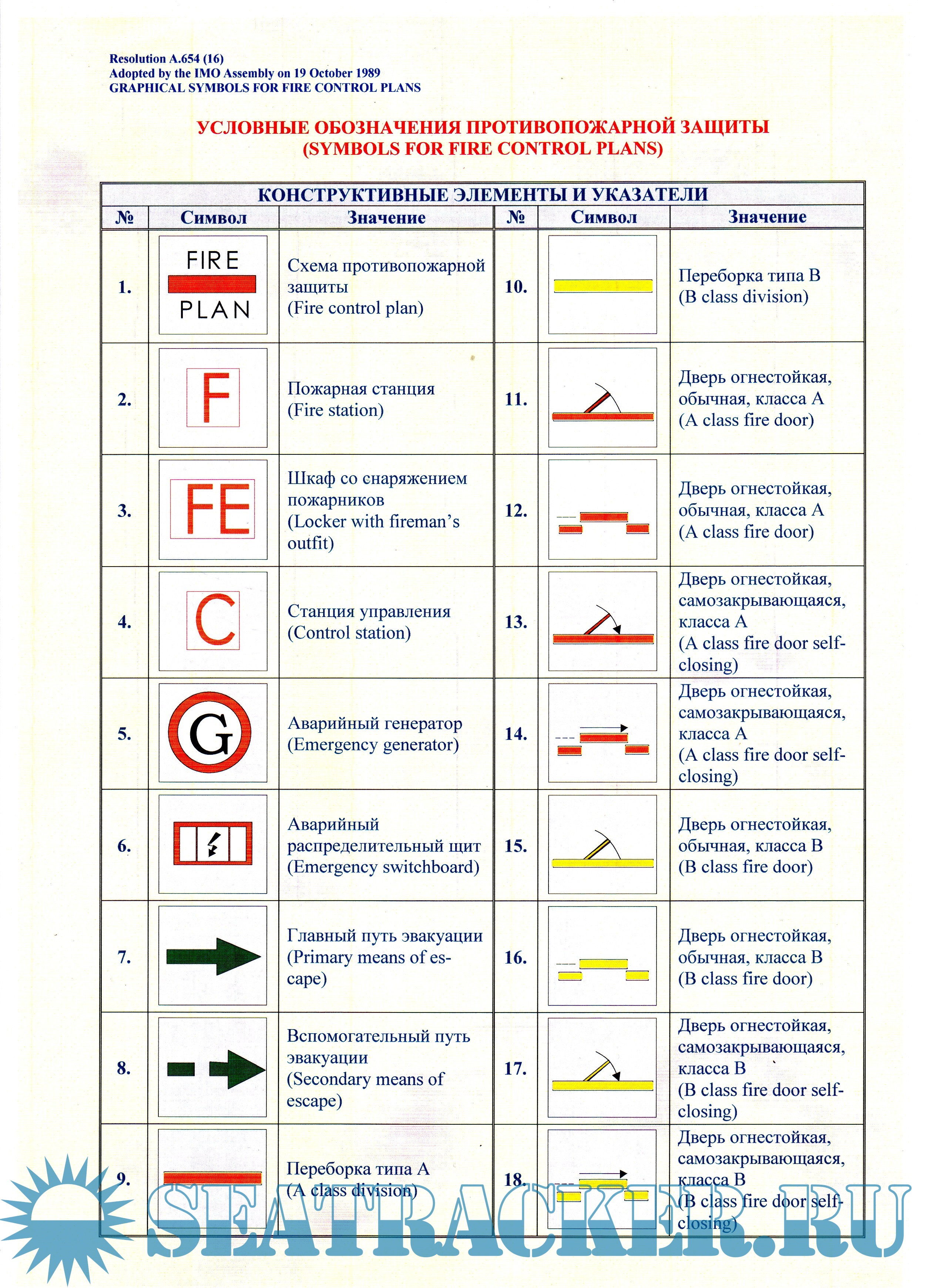 Резолюции IMO с требованиями по маркировке морских переносных огнетушителей и графических символов противопожарной защиты