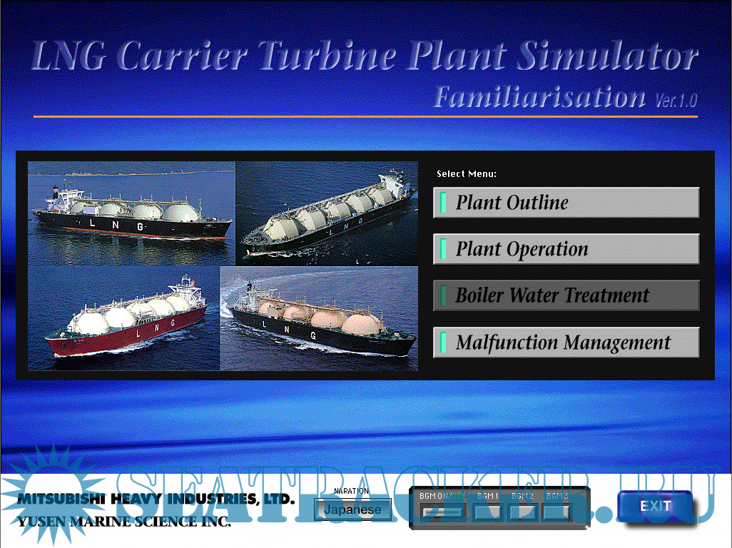 Year: 2012 Platform: PC Version: 1.0 64-bit OS compatibility: yes System Requirements: Windows XP/Vista/7/8/10 Developer: Yusen Marine Science & Mitsubishi Heavy Industries Localization: english Crack: not needed Description: This simulator precisely represents the actual console via console and virtual reality and exactly produces the activity and situation. Therefore, it provides various training scenarios including plant-up and plant-down operations, operations for entering and leaving harbor, and operations under normal navigation and emergencies.-Тренажер-Симулятор танкера-газовоза по перевозке сжиженного природного газа (СПГ)-LNG. Особенность подобных газовозов-перевозка в жидком состоянии при температуре -163гр. Цельсия. Эти уникальные суда требуют квалифицированного персонала. Для работы на подобных судах требуется прохождение не только конвенционных курсов для газовоза, но и специализированных курсов на узко профильных тренажерах. Ни одного такого тренажера на территории России и Украины пока нет. Такое образование можно получить только за границей. Additional info: Монтировать образ с помощью DAEMON Tools или Alcohol Soft, открыть, нажать старт и пользоваться.