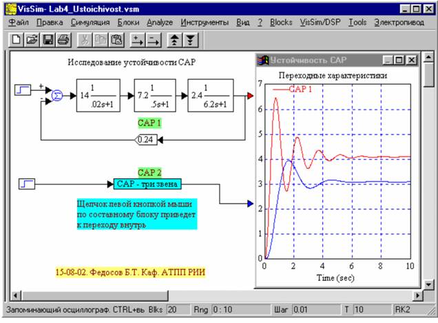 Description: Программное обеспечение для симуляции движения линейных, нелинейных, непрерывных, дискретных, гибридных моделей систем. Имеет частотные, корневые, вариационные, нейронные инструменты оценки качества, устойчивости, синтеза, коррекции, оптимизации, линеаризации, программирования цифровых сигнальных процессоров, отладки объектов в контуре модели. Рекомендуется специалистам по теории систем автоматического регулирования. Интегрируется с массовыми системами компьютерной математики Mathcad и MATLAB.-VisSim is an award winning software program for the modeling and simulation of complex dynamic systems. VisSim combines an intuitive drag & drop block diagram interface with a powerful simulation engine. The visual block diagram interface offers a simple method for constructing, modifying and maintaining complex system models. The simulation engine provides fast and accurate solutions for linear, nonlinear, continuous time, discrete time, time varying and hybrid system designs. With VisSim, users can quickly develop software or "virtual" prototypes of systems or processes to demonstrate their behavior prior to building physical prototypes. Built-in integration tools allow users to communicate seamlessly with MATLAB and Mathcad. A VisSim/SIMULINK Translator™ allows SIMULINK users to import SIMULINK block diagrams directly into VisSim.-Additional info: Currently, there are known incompatibilities between VisSim and Vista with regard to VisSim's configuration file.