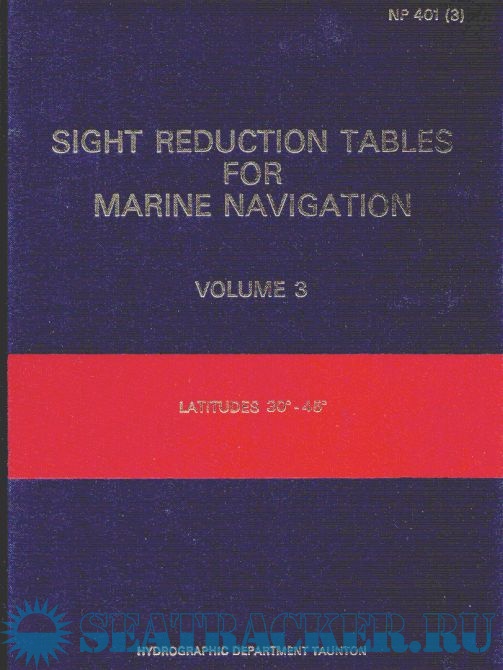 Year: 1987 Language: english Author: USA Defence Mapping Agency Hydrographic Center Publisher: Hydrographic Department of UK Ministry of Defence Edition: NP 401(3) Format: PDF Quality: Scanned pages Pages count: 401 Description: The Sight Reduction Tables for Marine Navigation is published in six Volumes, each of which contains two eight-degree zones of latitude with a one-degree overlap between Volumes. They are designed to facilitate the practice of celestial navigation at sea. The tables are primarily used with the Intercept method of sight reduction by entering arguments of latitude, declination, and Local Hour Angle and obtaining tabulated altitudes and azimuth angles. Present book contains area covered by latitudes: 30-45 (inclusive) Additional info: Interactive menu is added. You can find the Sight Reduction Tables for Marine Navigation. Vol.4 there: