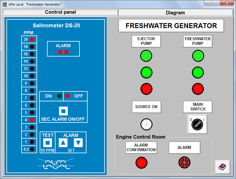 Симулятор судовой ВОУ (водоопреснительной установки) Alfa Laval JWP-26-C