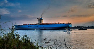 С осени нынешнего года по океанам планеты величественно шествует самый большой действующий пароход в мире. Построенный в конце нынешнего лета гигантский контейнеровоз оснащён также и самым большим в мире двигателем внутреннего сгорания. А вместимость этого судна, оцениваемая по стандартной схеме, составляет 13,5-14,5 тысяч TEU (эти единицы эквивалентны 20-футовым контейнерам).