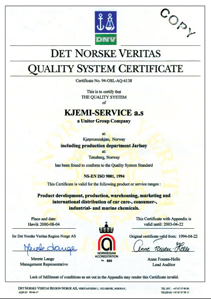 DET NORSKE VERITAS QUALITY SYSTEM No. 94-OSL-AQ-6138
